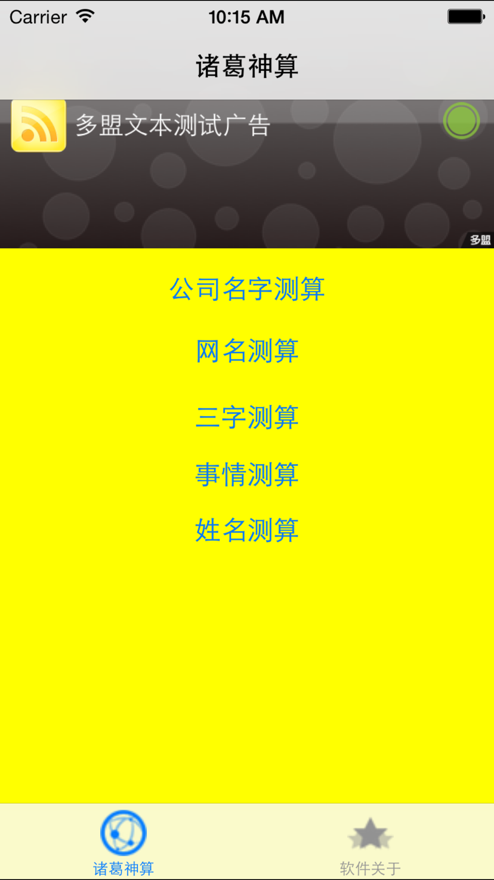 本软件是一款休闲娱乐软件,诸葛神算又称诸葛神数、诸葛神签、诸葛灵签,相传为三国时诸葛亮所作,诸葛神算测字一共三百八十四签,按三百八十四爻,谶语句法,长短不一,寓意深远,对占卜者的思路,有很大的启发作用,特别是那些正陷于彷徨迷惘中的人,更有一种拨开云雾,重见天日的豁然开朗感觉。因此这是可以作为判断吉凶,决定进退,是选择趋吉避凶的指南针。