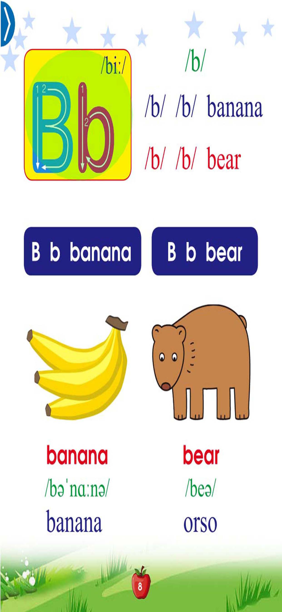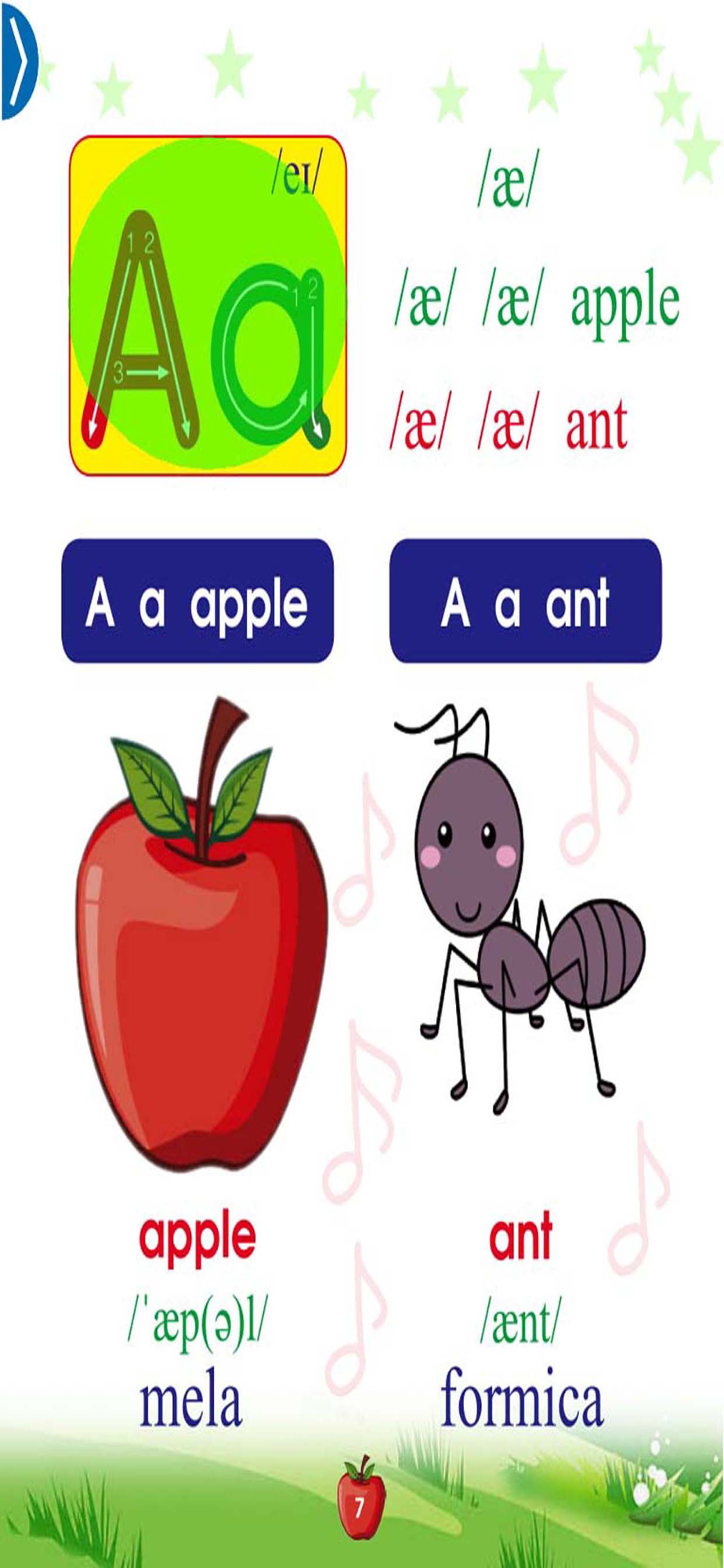 The book "English Phonics for Grade 1 Italian Version (italiano)” includes 34 pages which are compiled according to the purpose "Learning by playing" and in the future we will integrate sound a long with illustrations (for example about illustrating a cat, when they touch the cat, there will be the sound "meow, meow"). Scientific research has shown that learning a second language, especially English learners from early age, increases the grey matter and stimulates the brain's potential. Therefore, it's necessary for parent to let their kids learn English at the early age. The utility you have when you use SmartBook: cheaper price than paper books (traditional books, SmartBooks Price: $0.99); You only pay once you buy the book and will be entitled to have all the benefits of the latest updates without having to pay extra money and use books forever without the fear of losing or tearing ...; Integrated - audio books (audio) mark each sentence, so when you read or listen to a sentence and want to listen again, you only need to touch the sentence and the sound of sentence will be played again; SmartBooks also has the feature of recording your voice (your voice reading the learning sentence) by clicking the icon Micro (icon Recorder), when you click on the icon Headphone (listen and write - listening and writing), screen appears with a lot of features to help you listen and write the sentence heard by key or by hand,... This is our breakthrough advance in the age of technology and it will help you a lot in learning language and reading conveniently.