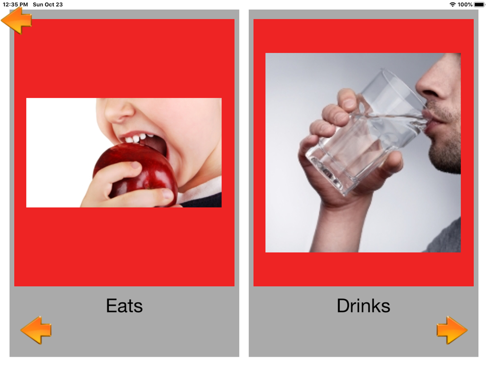 Touch the left or right arrow under the sentence strip to go back or advance a page. Touch the upper left arrow to return to the index page.