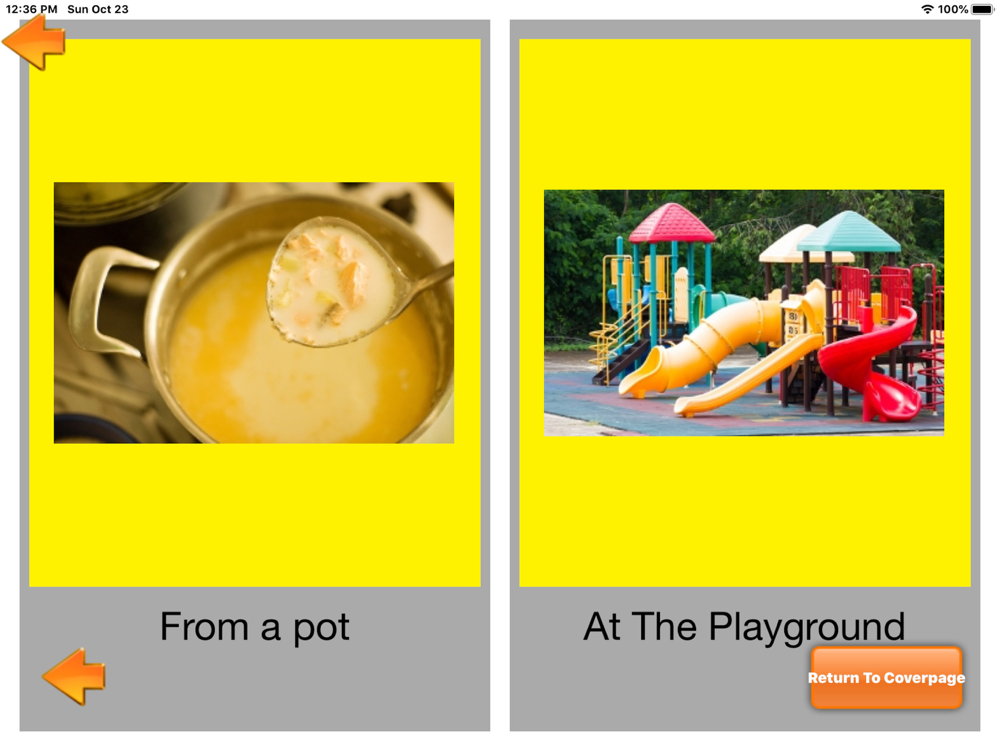 THE INDEX includes instructions, sight words and the START button which brings you to the first page for teaching the concept of same or different. As the Learner progresses, you may skip pages, go back and forth for variety and random rotation if you so choose. However, we find uniformity is the consistency needed to learn so we recommend doing it the same way. Use three to four times per week and choose highly desirable and motivating re-enforcers that are then only available while using the app.
