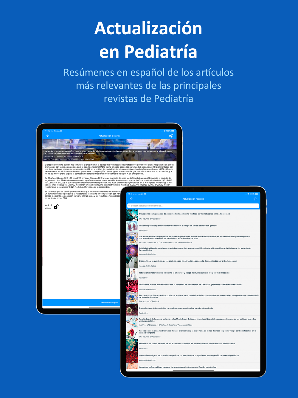 * Actualización Científica de publicaciones médicas, con resúmenes en castellano de los artículos más relevantes de las revistas pediátricas internacionales y nacionales de mayor factor de impacto y relevancia clínica en Pediatría. Una manera muy sencilla de estar al día en los temas de tu especialidad y de tus áreas de conocimiento médico de interés.