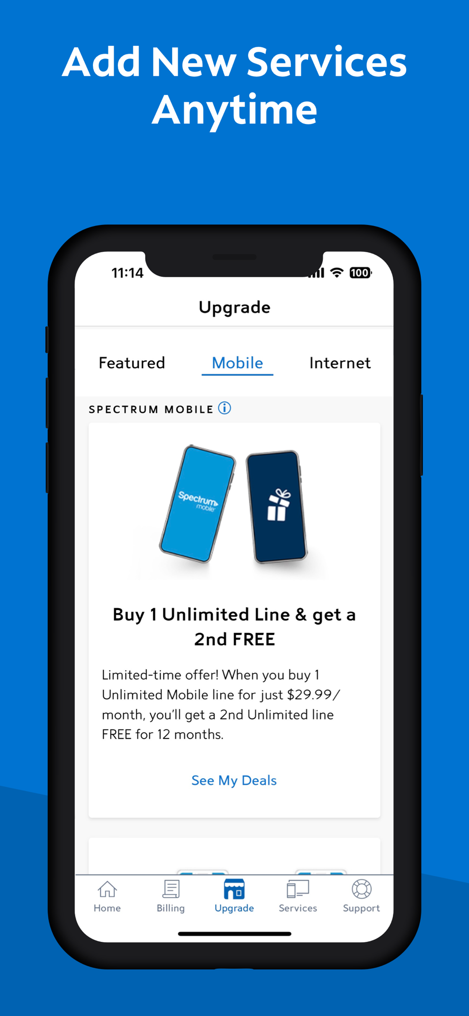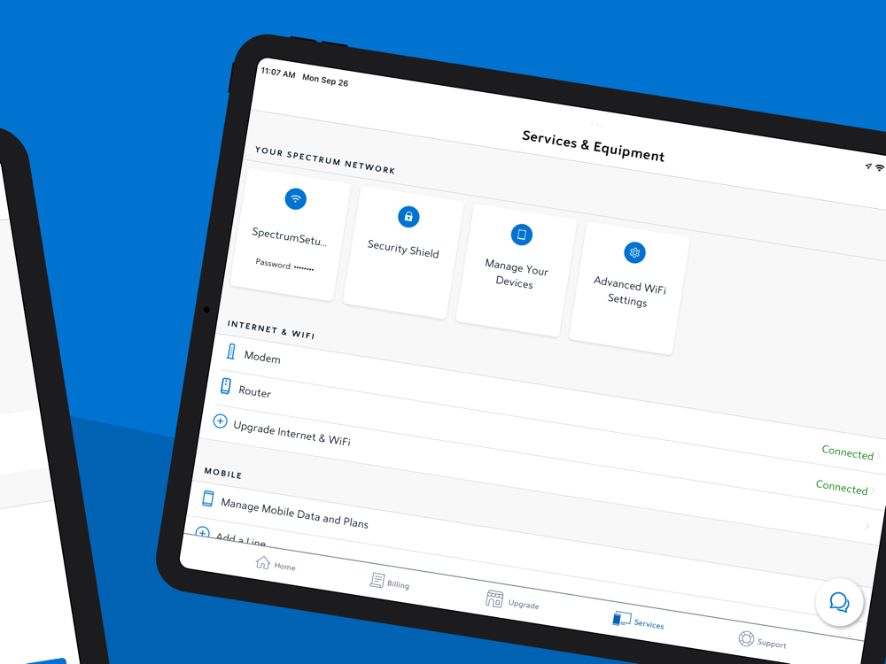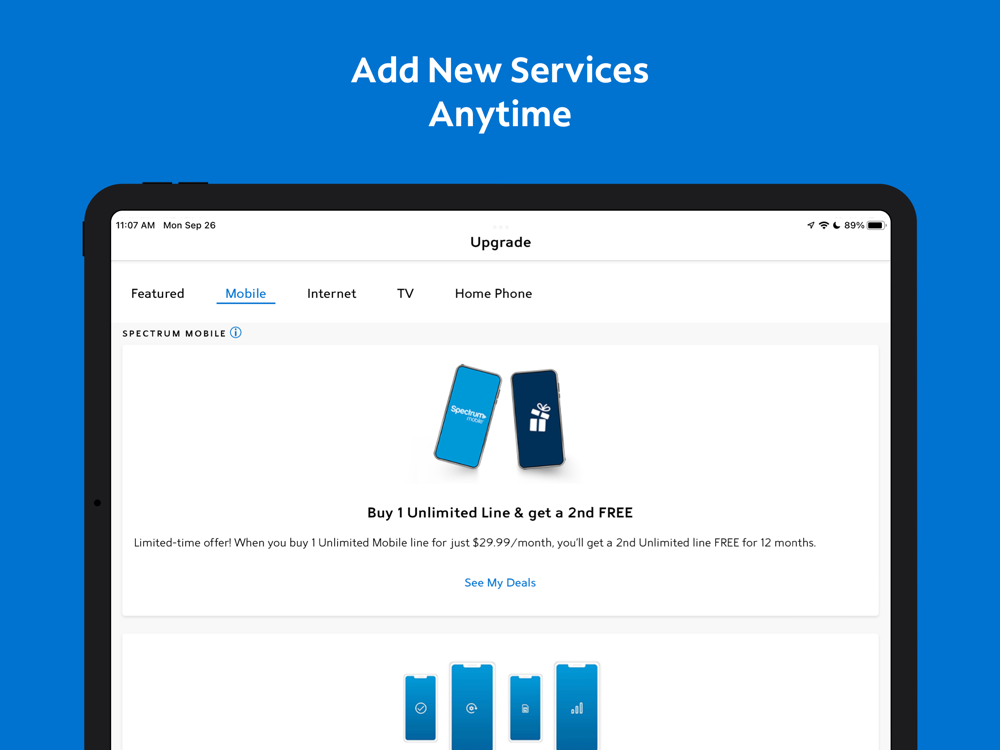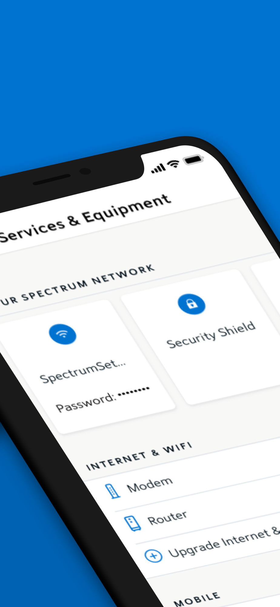• Add Spectrum Mobile or upgrade your Spectrum TV and Internet services in the app.