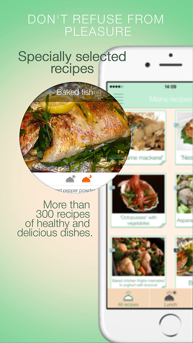 * More than 300 simple recipes of delicious dishes in constantly updated database! They can be added to the list of favorite recipes, so you can add your favorite recipes to the diet diary at least for half a year ahead! App will add all the ingredients from any receipt to your shopping list to make your shopping easy.