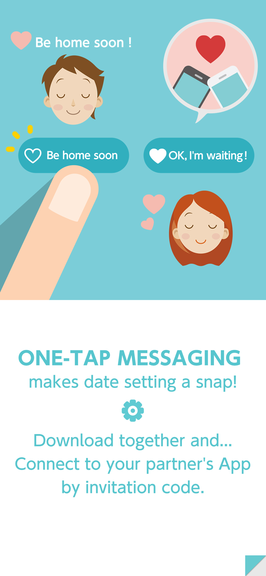 Two simple buttons—"I'm coming home" and "I'm waiting"— connect just the two of you with one touch! Making promises on important days is simple.