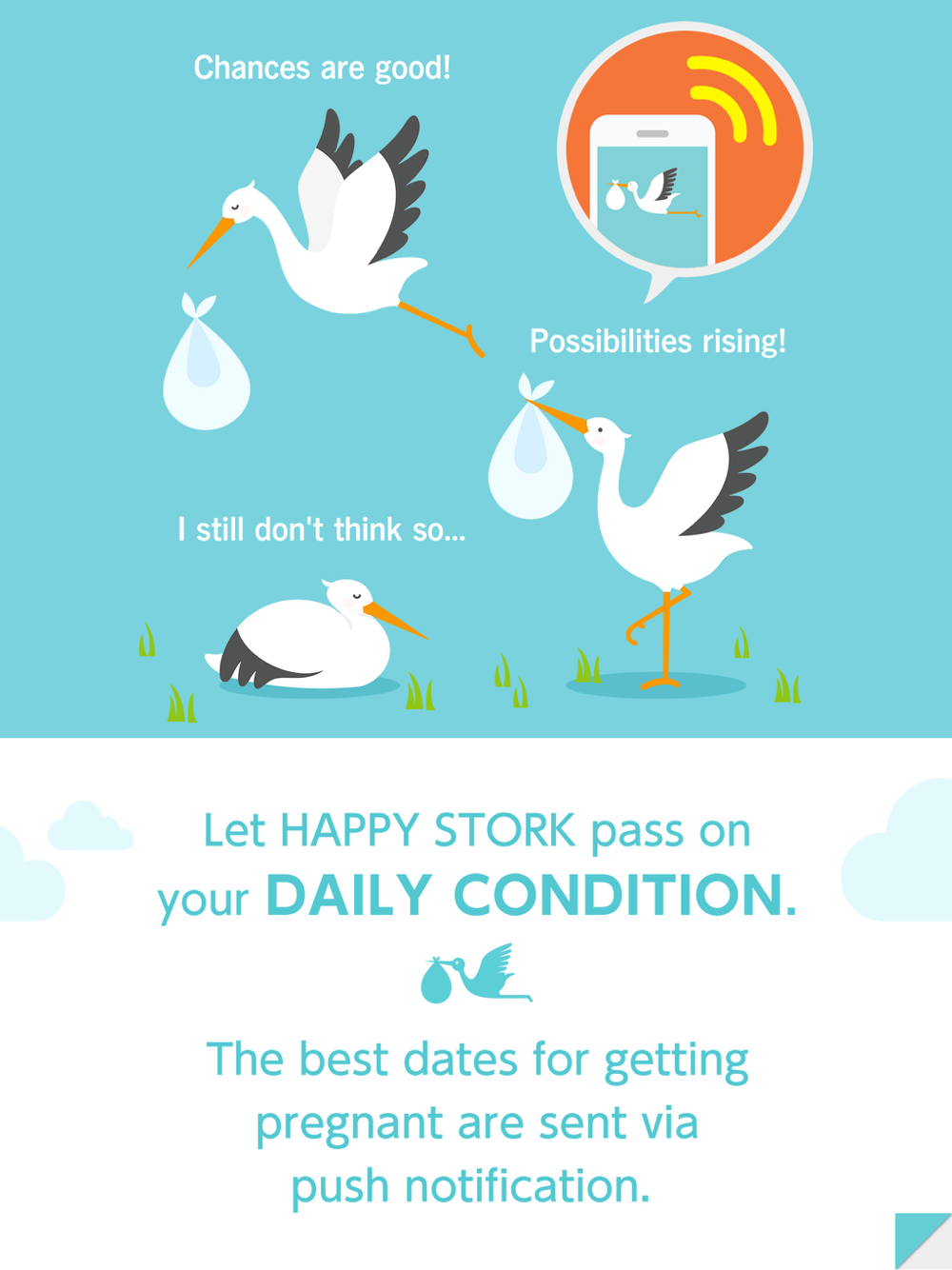 The charming Happy Storkg app discreetly informs couples of good timings for conception!