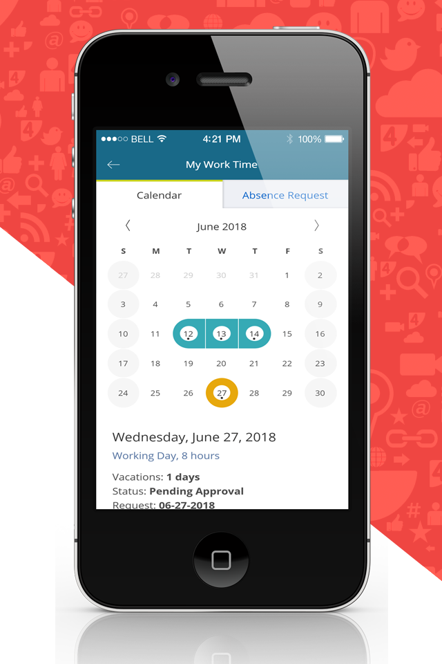 • Manage your absences very quickly and easily by submitting, tracking or canceling absence requests.
