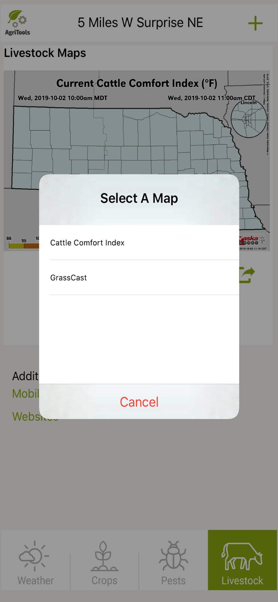 AgriTools provides easy access to location-specific climate and weather information important to the agricultural industry in Nebraska. Data from the High Plains Regional Climate Center, National Weather Service, and Nebraska State Climate Office allows the user to view recent data and forecasts for their current location or other desired locations. AgriTools also provides quick access to related University of Nebraska - Lincoln Extension apps and websites.