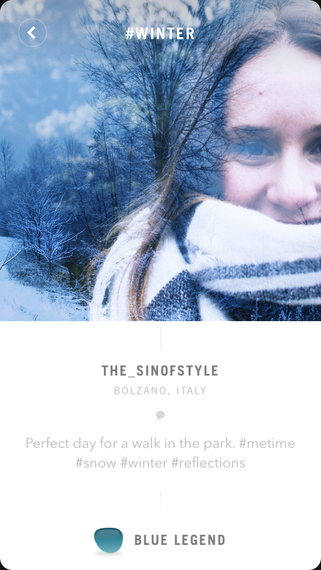 The Ray-Ban #Reflections app lets you shoot, edit and share unique double exposure pictures using your front and back camera. Drawing on the popularity of fans taking photos with reflections in their Ray-Ban sunglasses, we created the #Reflections app so every selfie now tells a story.