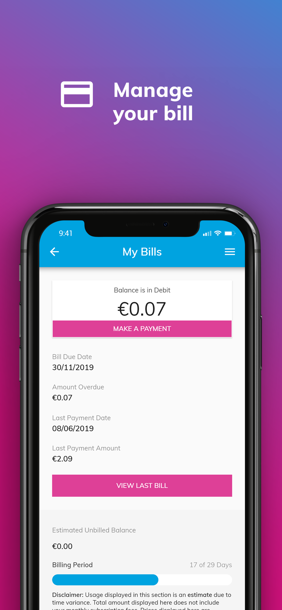 Control your account: easily pay your bill through our secure and certified payment portal, see your balance, view or download previous invoices, set up or cancel a direct debit – all in one place.