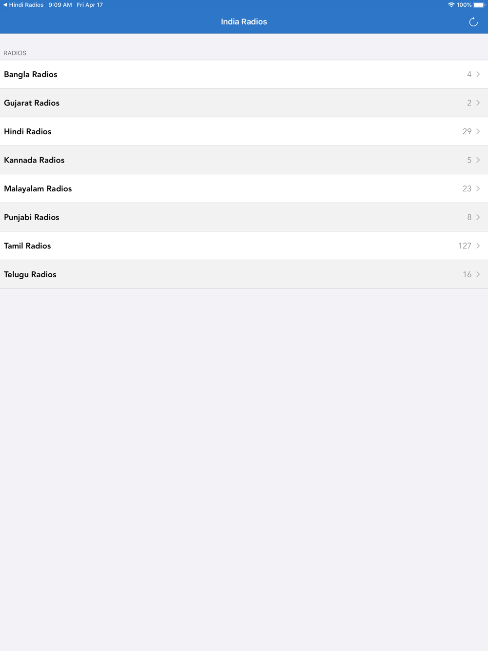 - Hindi Radio FM - Radio Aum 2K, Radio City, Teen Taal, Tharanga Radio, Mera Sangeet, Sabras Radio, Radio Afsana, Desi Music Mix, Radio Khushi, Hits of Bollywood and many more