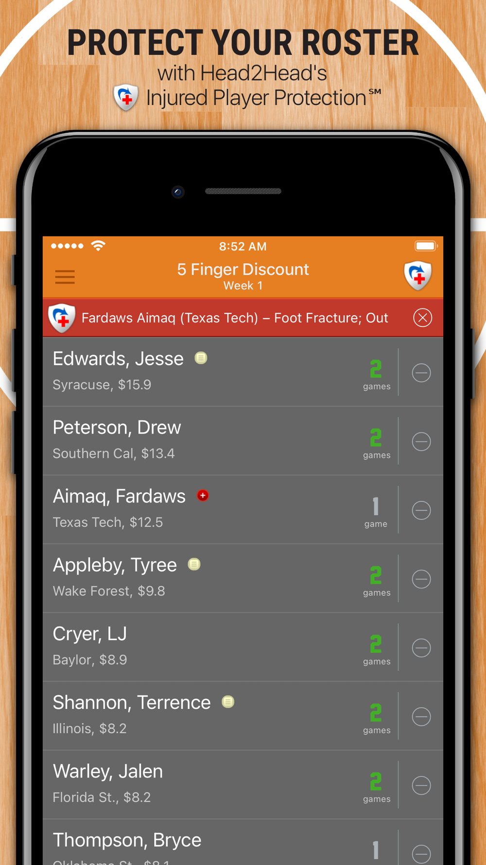 Freak injuries. Last-minute benching. Canceled games. Sometimes the season can be a bit unpredictable. But with H2H's Injured Player Protection℠, you can rest easy knowing that if the unexpected happens to someone in your lineup, you're automatically covered.
