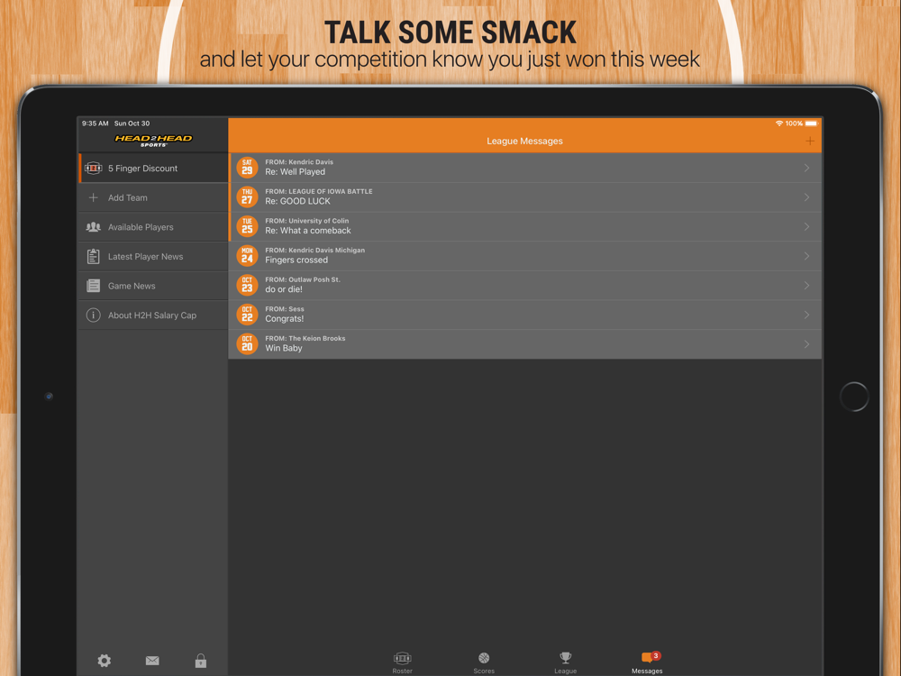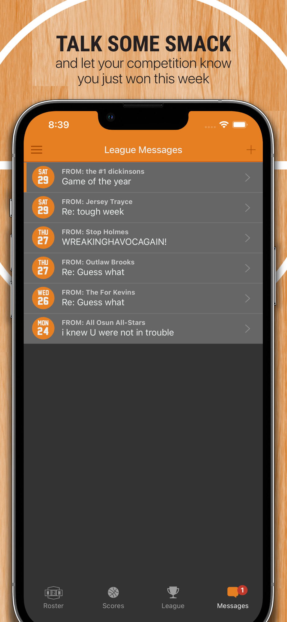 Use league messaging to talk some smack to your opponents or buddies in your league. You'll receive a message indicator on your team account and and email alert that you've been sent a message. This is a great way to talk up your game and get to know your opponents!