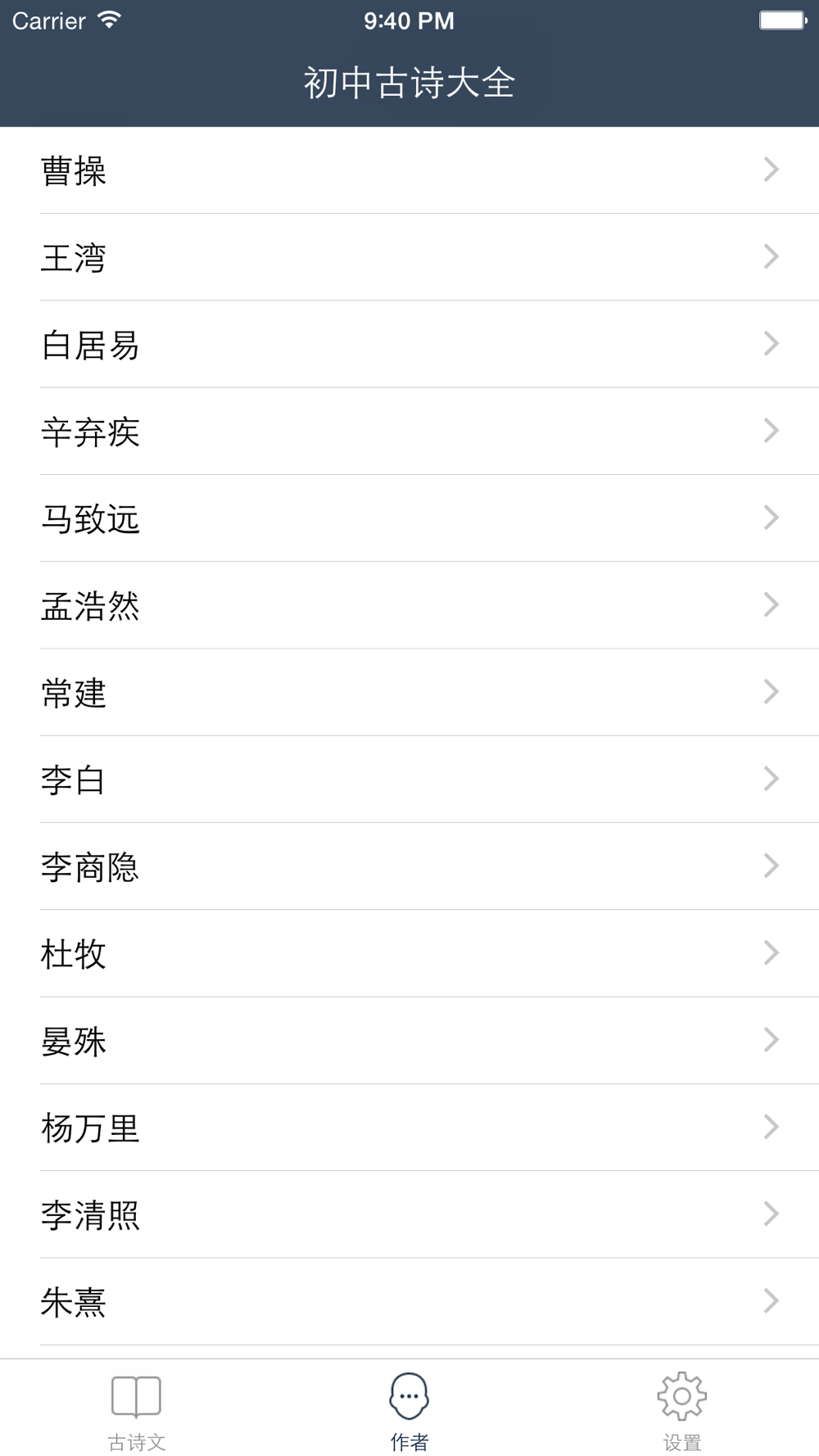 全部古诗词及文言文等作品内容由诗文、注释翻译、名家赏析、生平简介、诗词风格、趣闻轶事等多部分构成。让大家轻松学习古诗文,增长知识。