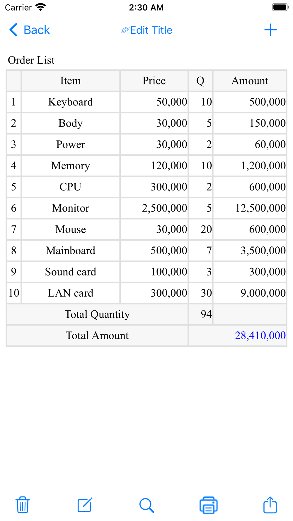 You can use Order statement, Buy statements, Quote, Purchase order, quotation, Estimation, Bill