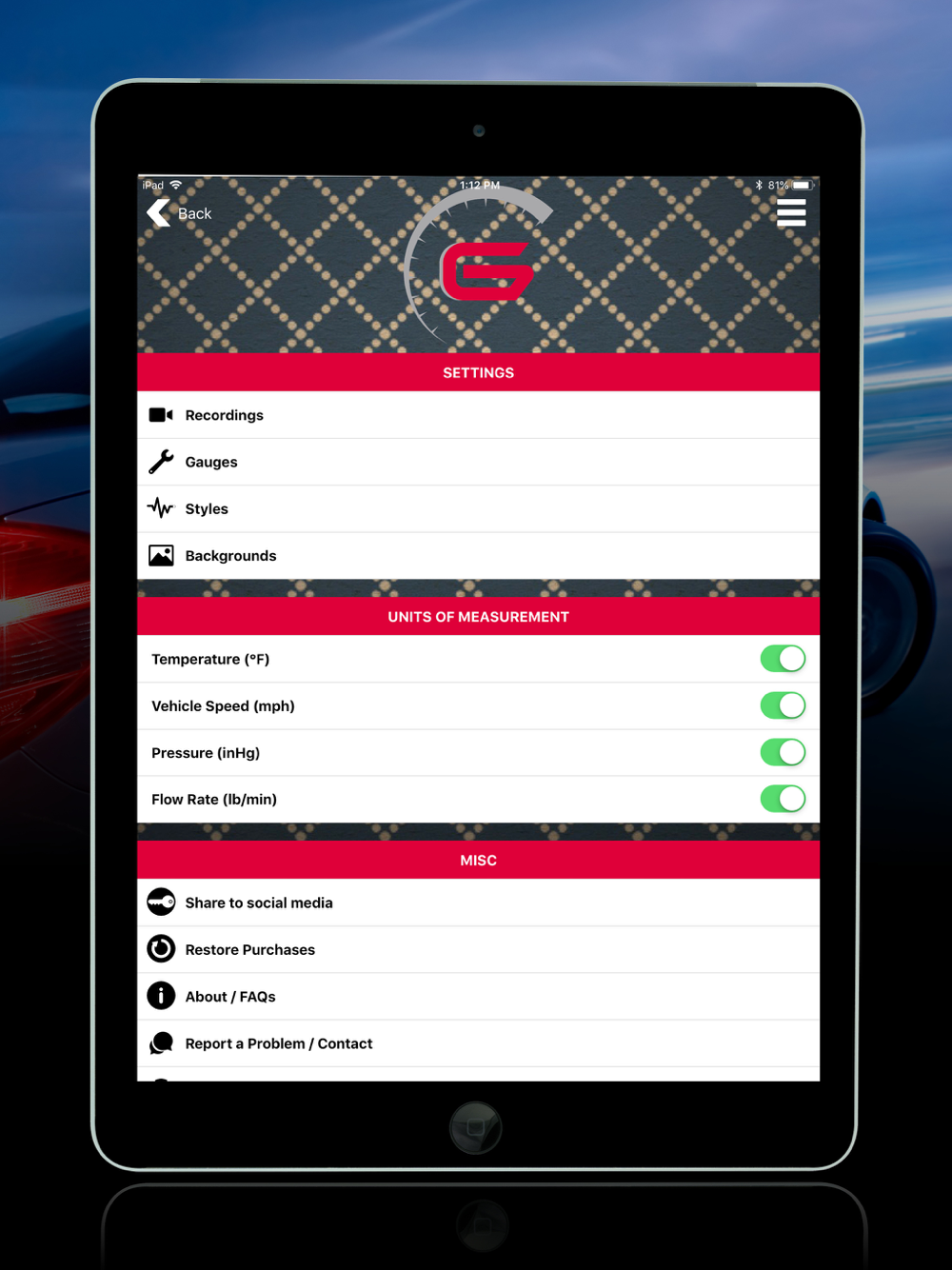With multiple gauge designs, you can customize the look and feel of the information displayed within the app. Turn’s your smart phone into a digital dashboard. Choose from Analog or Digital gauge with either a portrait or landscape display mode to match your style!