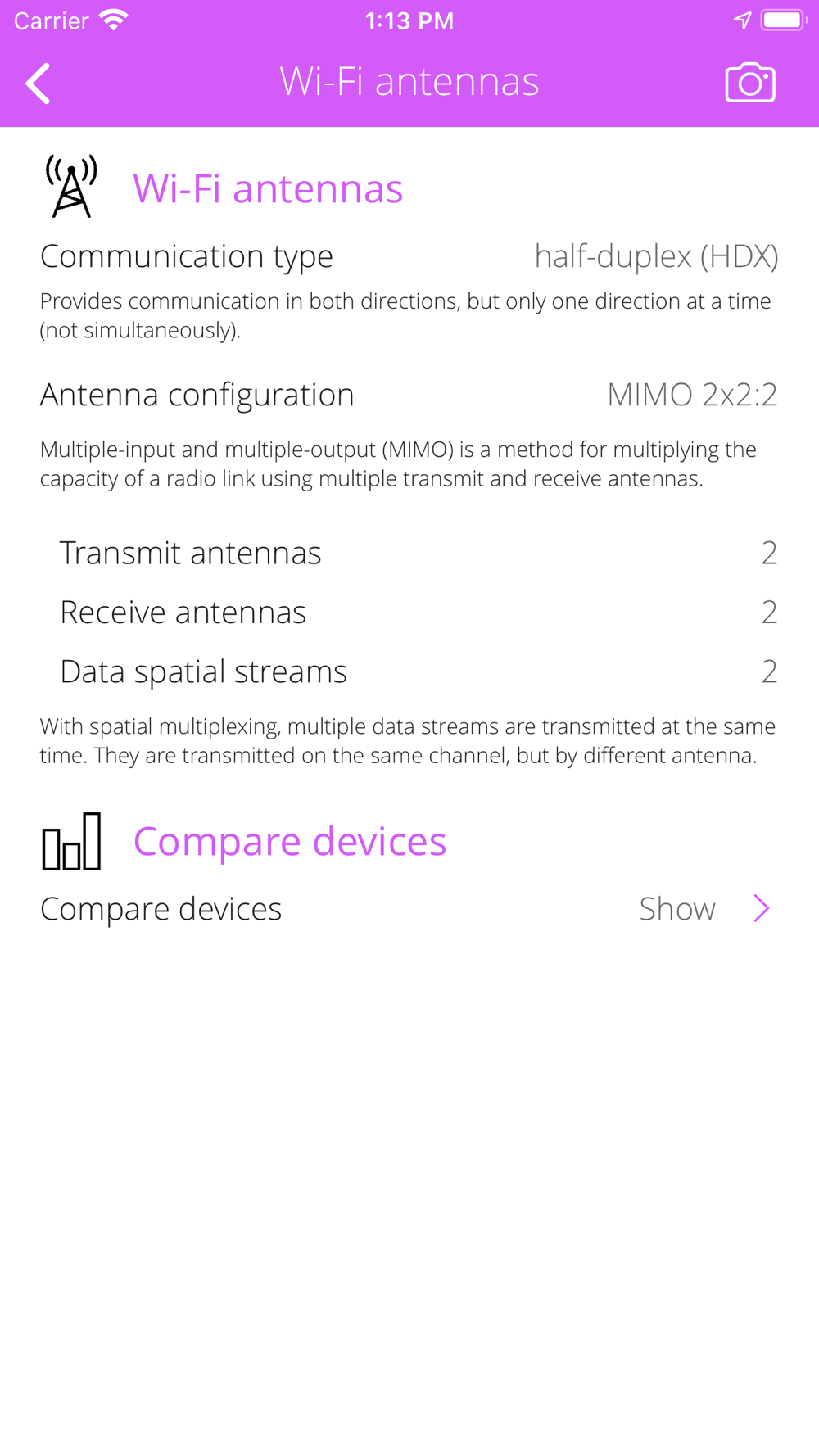 • Detect and explain available antennas, MIMO config, spatial streams.