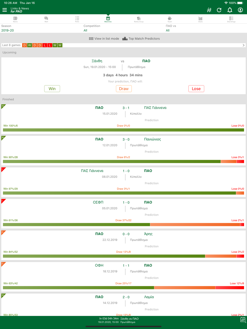 Matches, Fixtures & Results with highlights