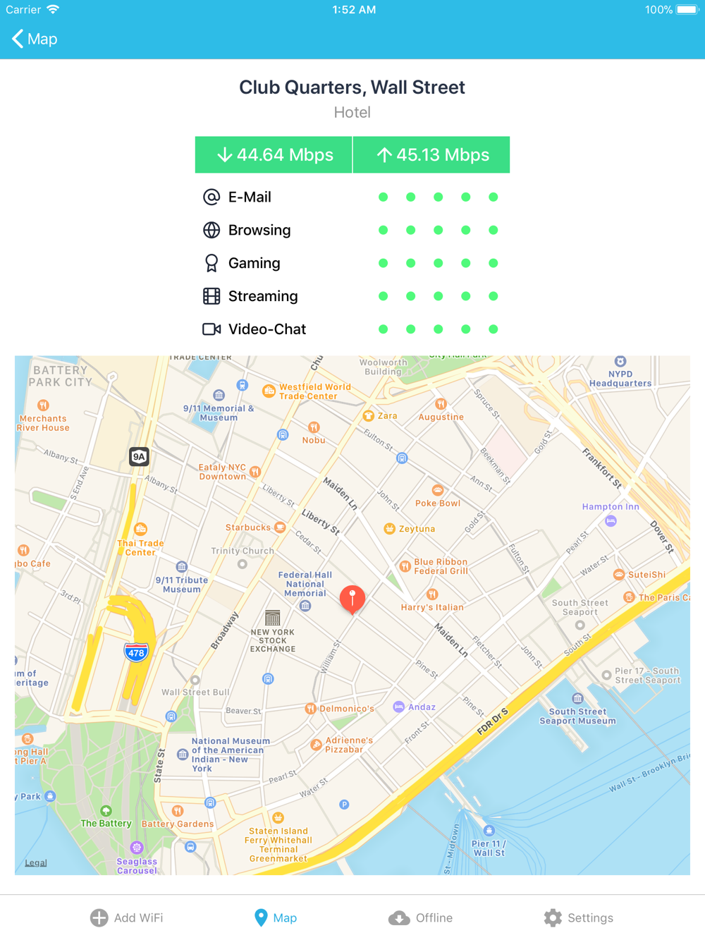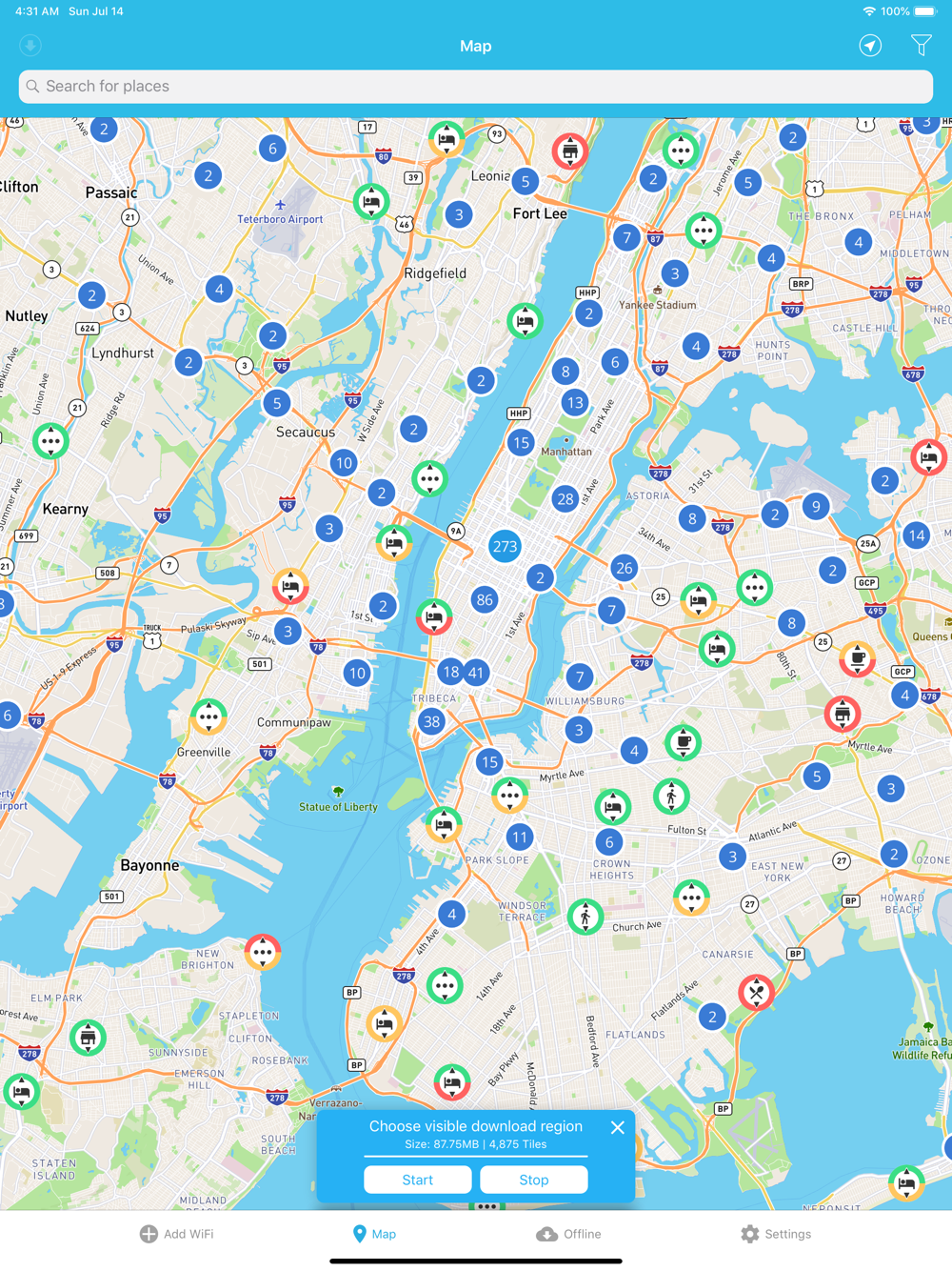 Find Fast WiFi wherever you go with the SpeedSpot WiFi Finder with Offline Maps. The Offline functionality makes it possible to download places that you are traveling to, so you can find Fast WiFi anywhere. The WiFi Finder is getting its data directly from SpeedSpots crowdsourced database of hundreds of thousands of WiFi Hotspots around the world. It is the only database that shows you WiFi rated by Hotspot Speed.
