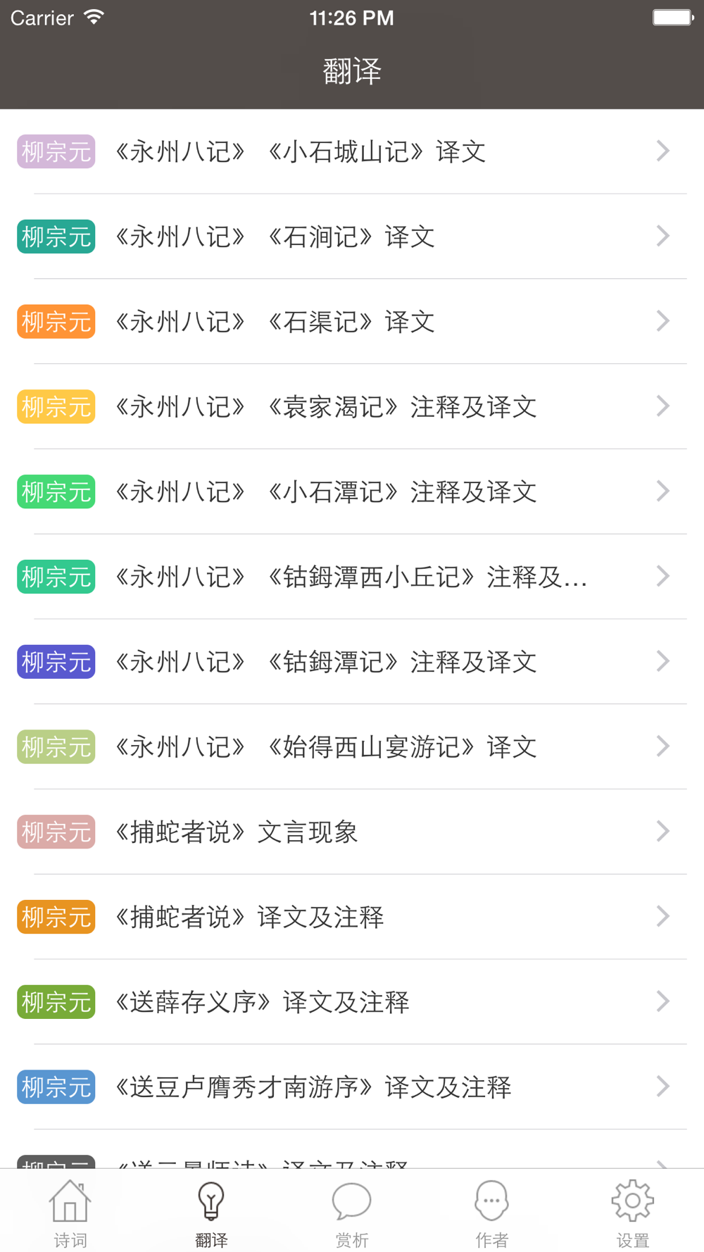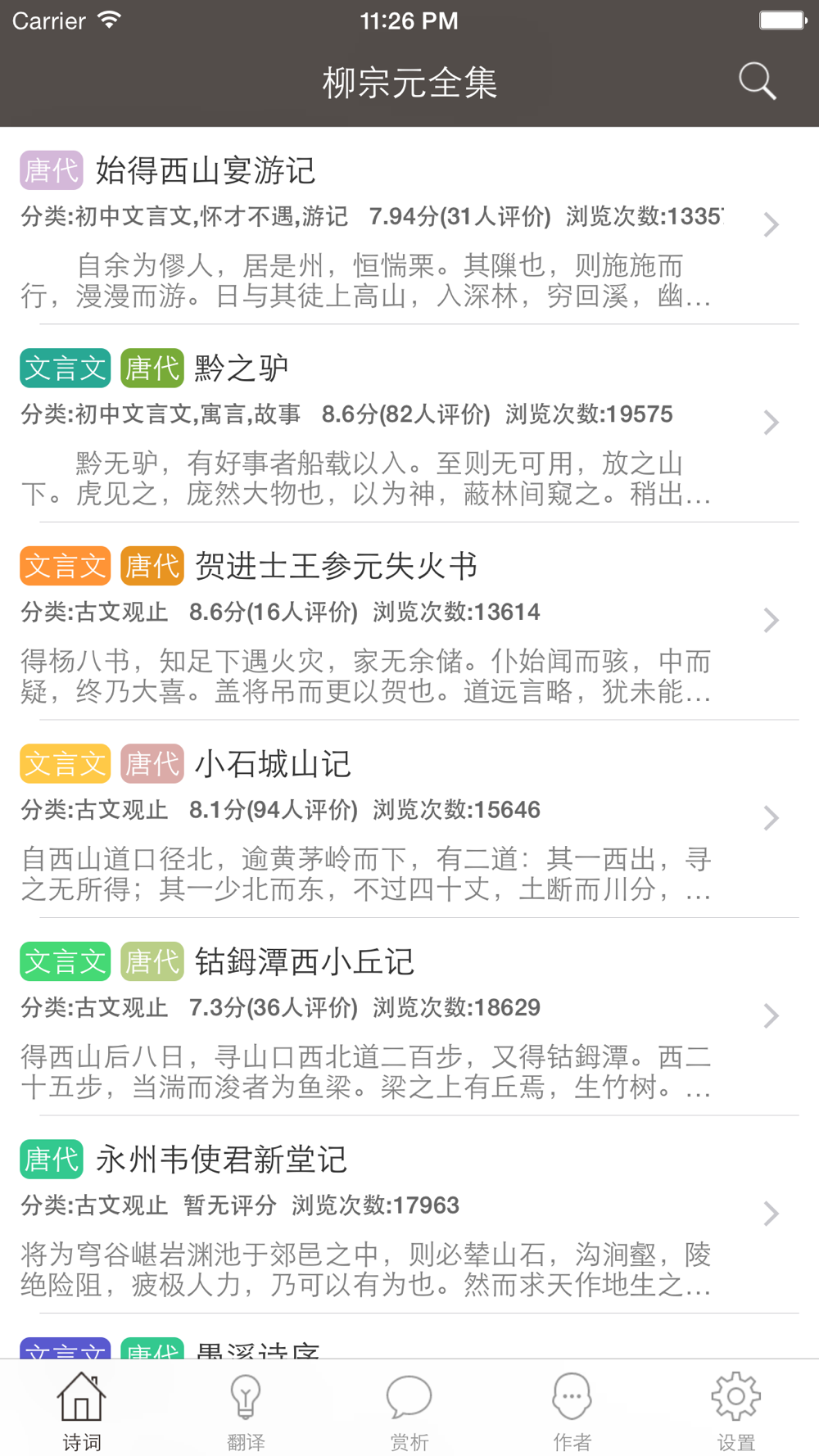 《柳宗元全集》囊括柳宗元生平全部古诗词及文言文等作品,内容由诗文、注释翻译、名家赏析、生平简介、诗词风格、趣闻轶事等多部分构成。让大家轻松学习古诗文,增长知识。