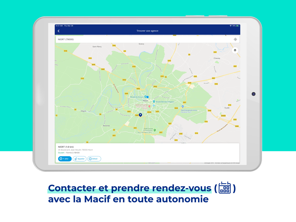 - Consulter les informations de votre agence MACIF (horaires, adresse, etc.)