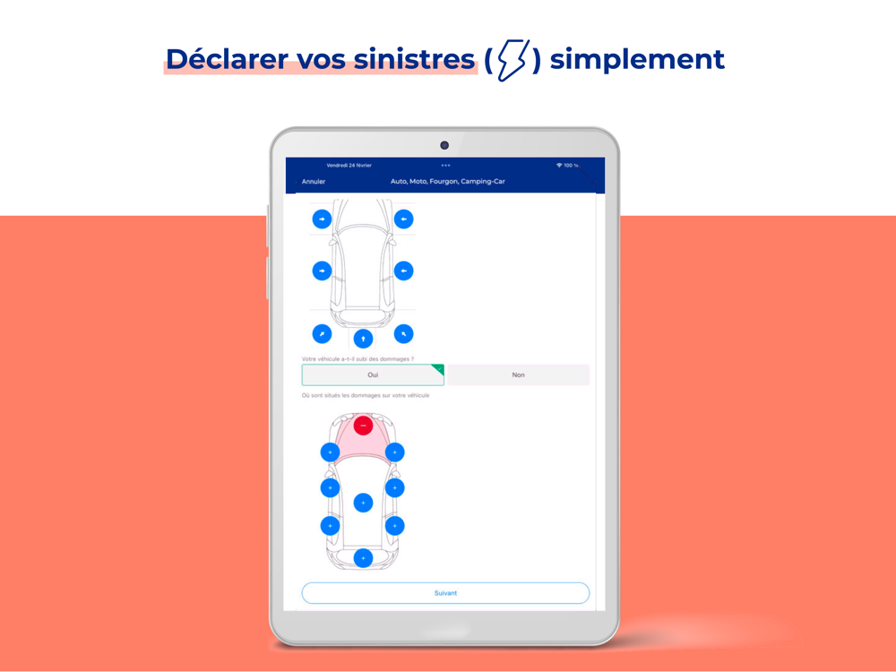 - Suivre et déclarer vos sinistres (auto, habitation, protection juridique, etc.) : déclarer vos sinistres habitation et véhicule directement en quelques taps. La déclaration est simple, rapide et adaptée pour tous vos types de sinistres (dégâts des eaux, tempêtes, vol, bris de glace, etc.)