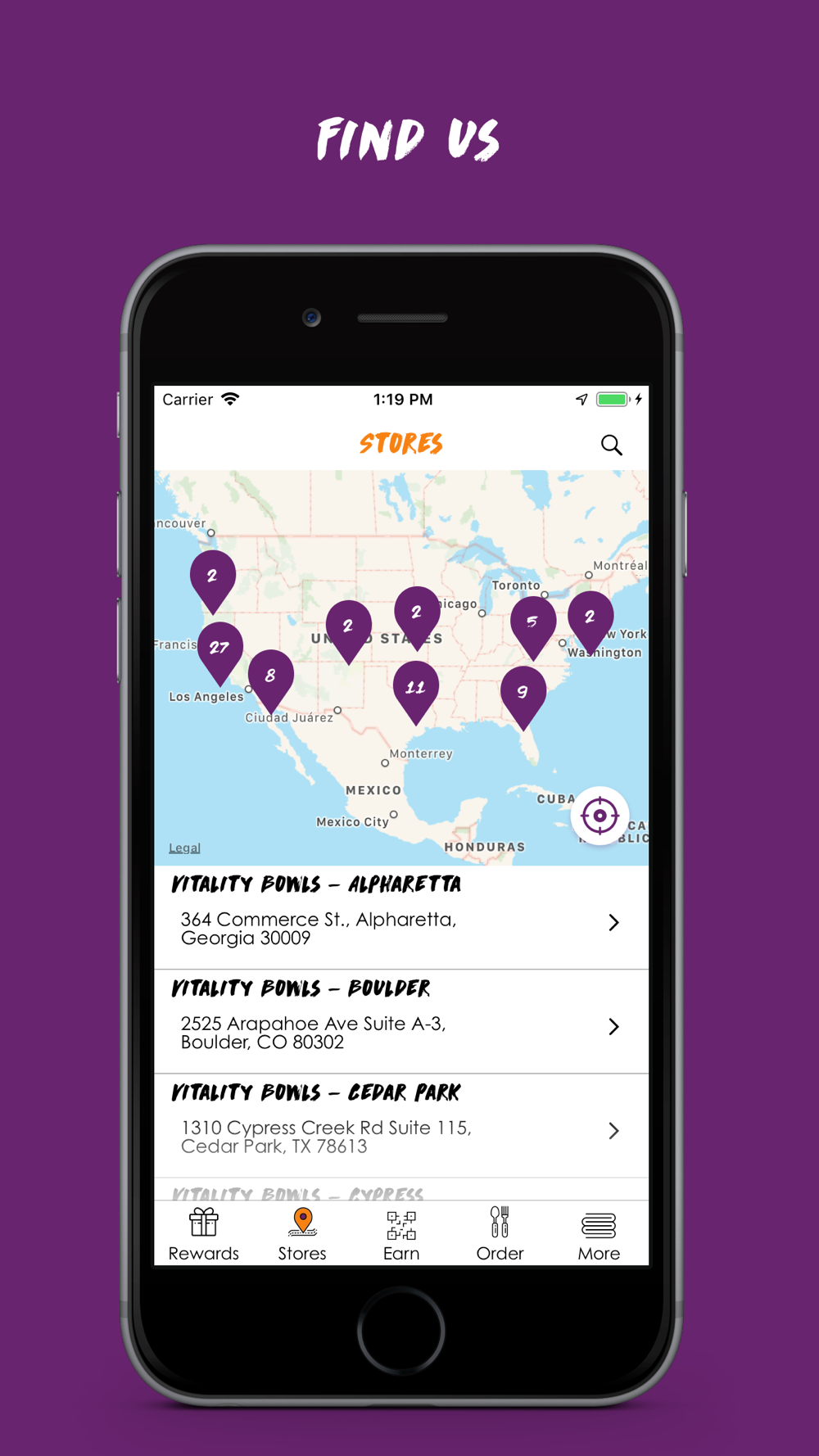 The Vitality Bowls App gives you the quickest, easiest way to place an order for pickup as well as earn loyalty points and exclusive rewards for free acai bowls, smoothies and juices. Features include: