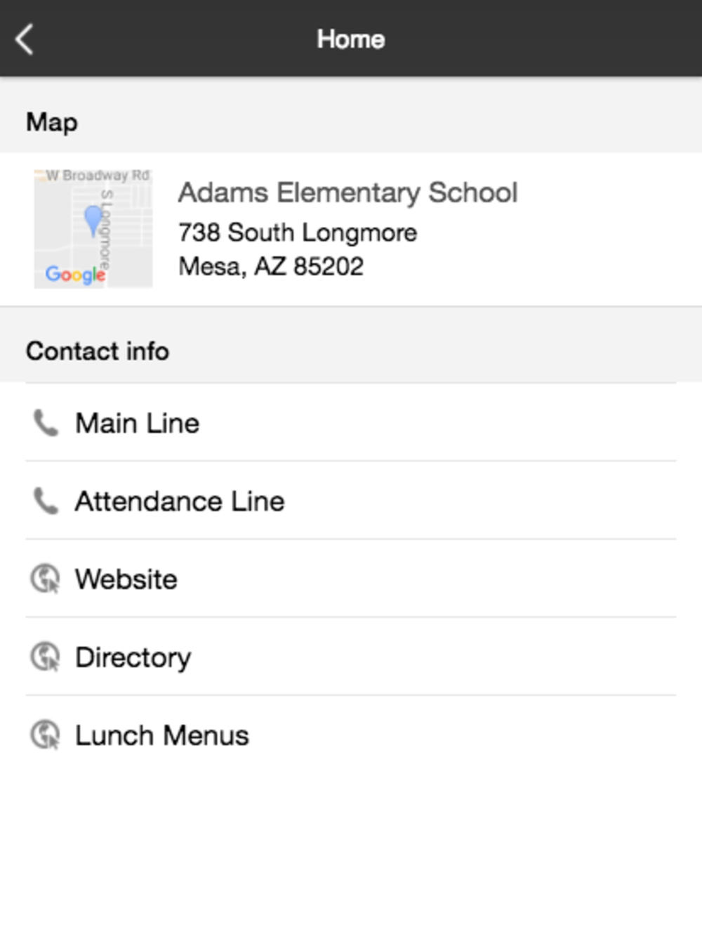 With the Mesa Public Schools mobile app, your school district comes alive with the touch of a button. Easily navigate through current news and events or check out the latest updates with social media like Facebook and Twitter. Quickly retrieve contact information, sporting scores, lunch menus, and more! It’s your school district available at your fingertips.