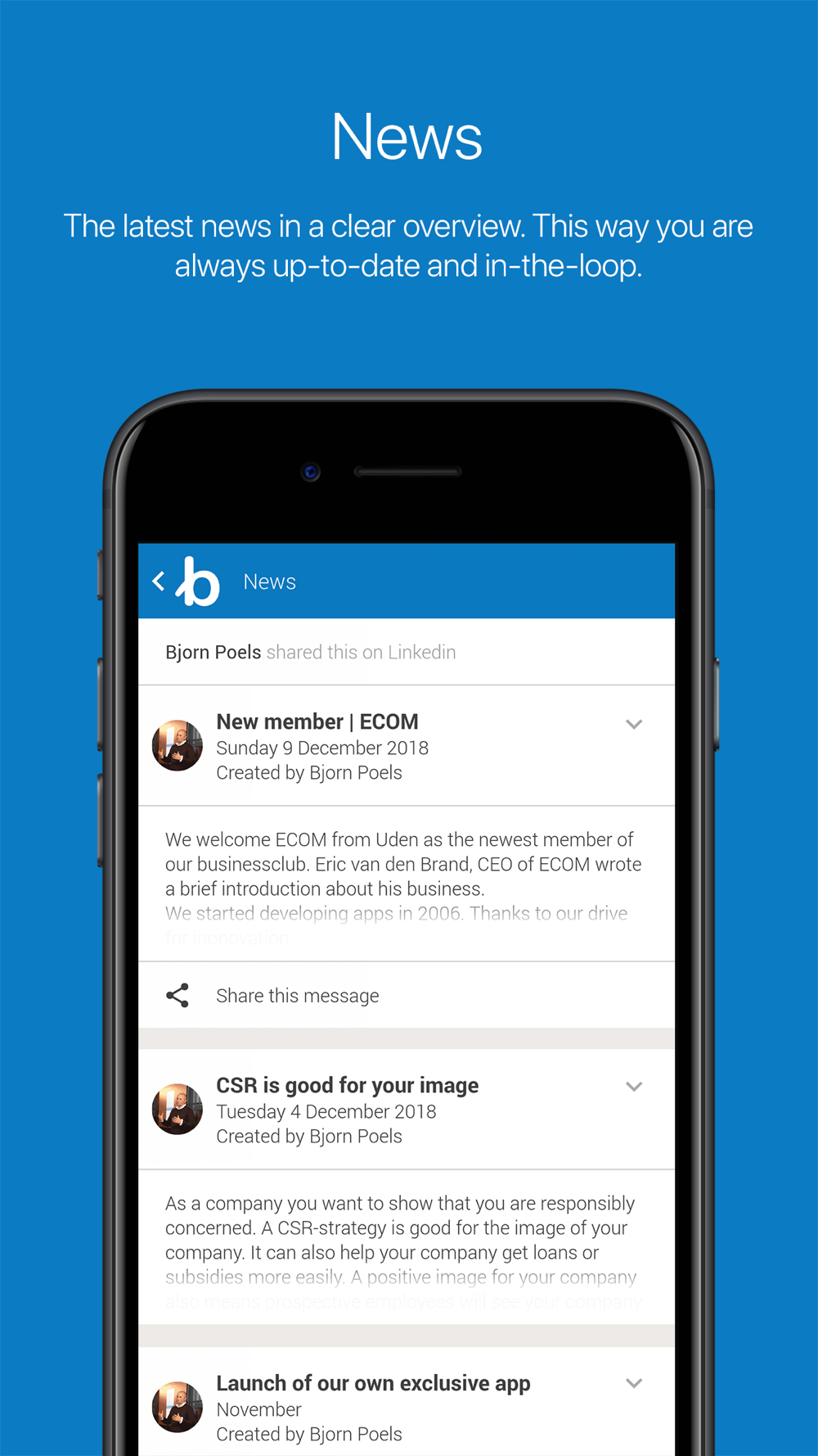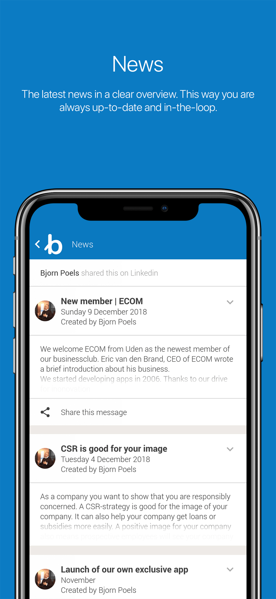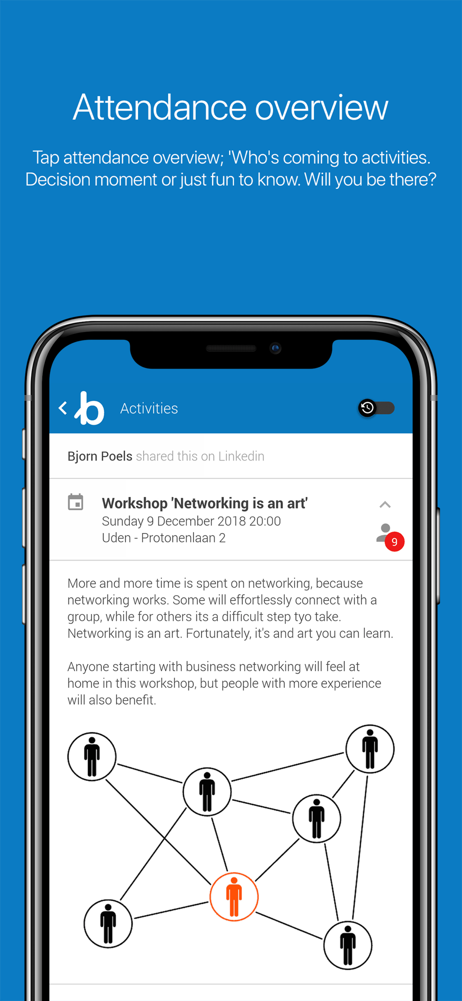 It is our goal to turn an organization into a community where people interact, find, connect and share. A community that you can inform at the touch of a button.