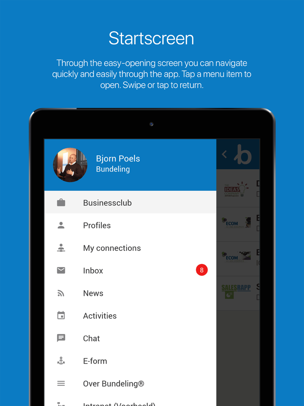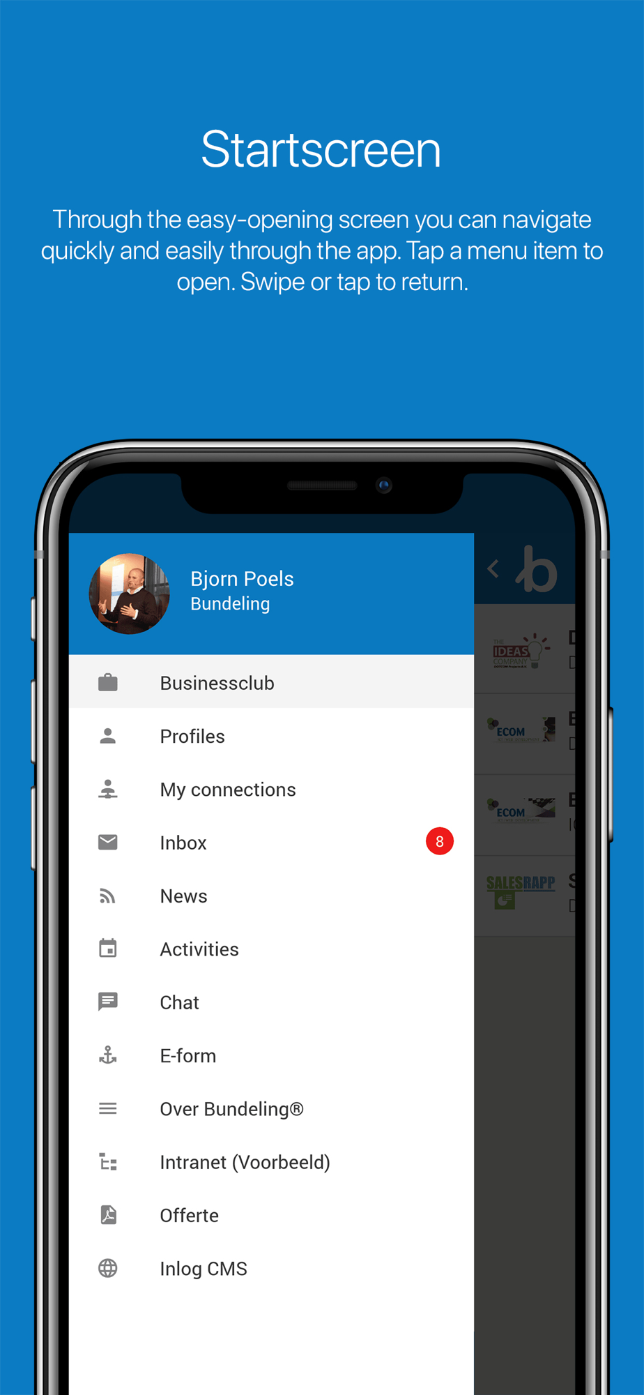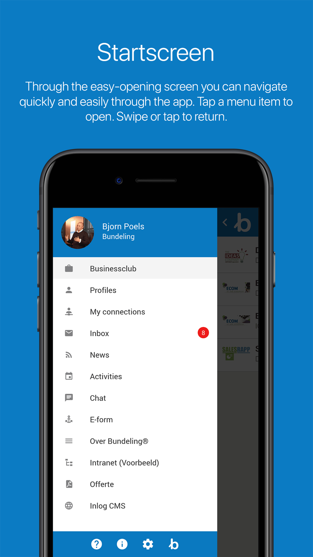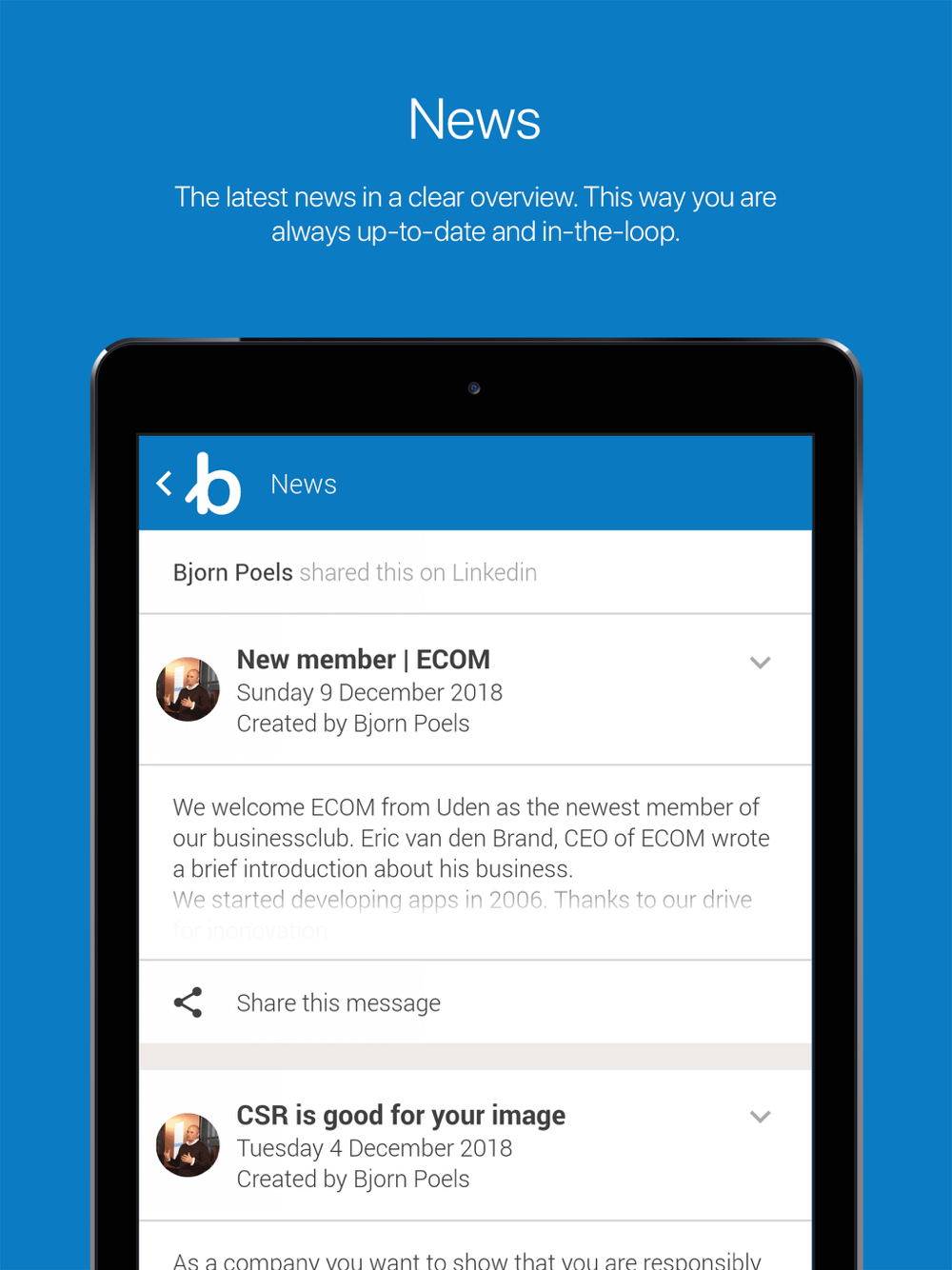 It is our goal to turn an organization into a community where people interact, find, connect and share. A community that you can inform at the touch of a button.