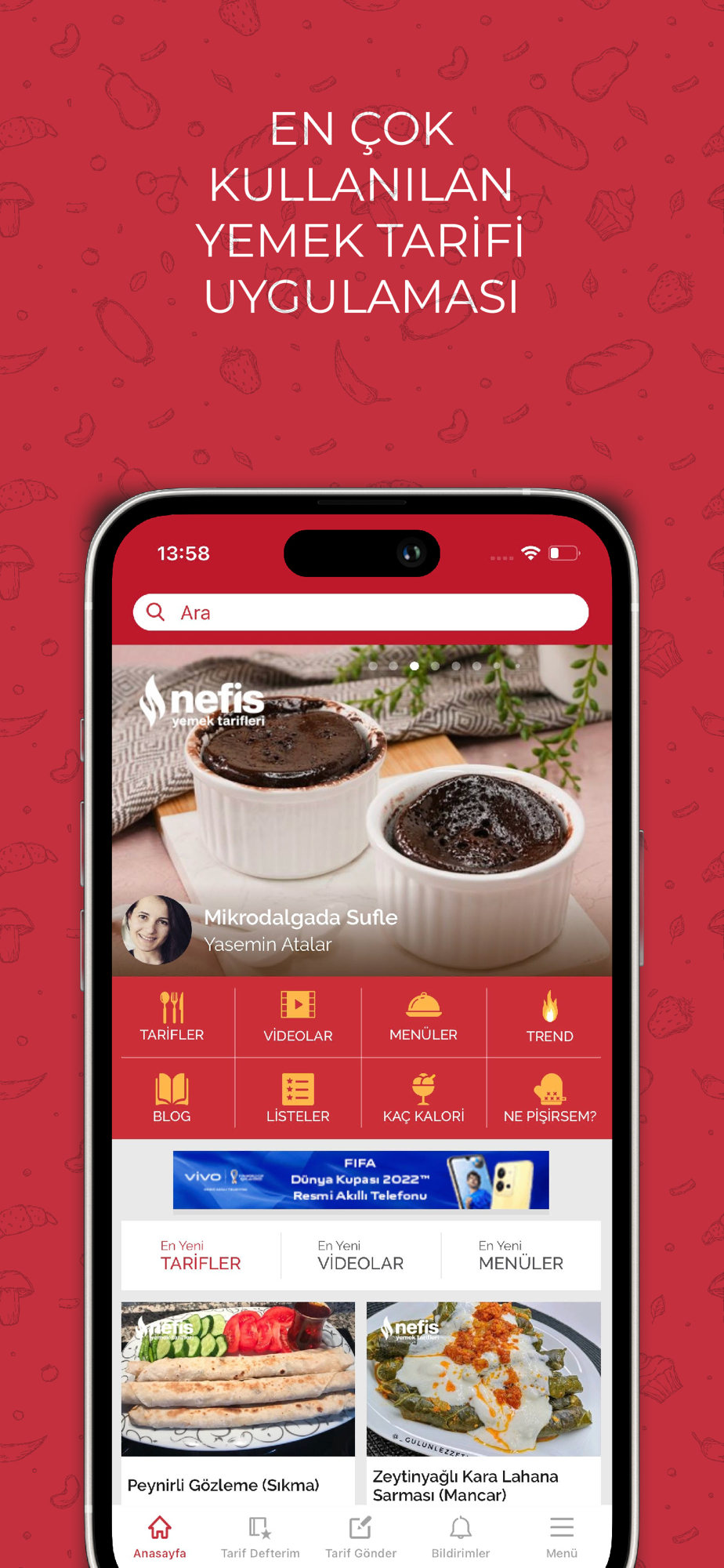 Bu uygulama ile Nefis Yemek Tarifleri'nde yayınlanan son tarifleri görebilir, kategorisel olarak tariflerde gezinebilirsiniz. Yeni tarif gönderebilir, yazarlarımızın profillerini görebilirsiniz.