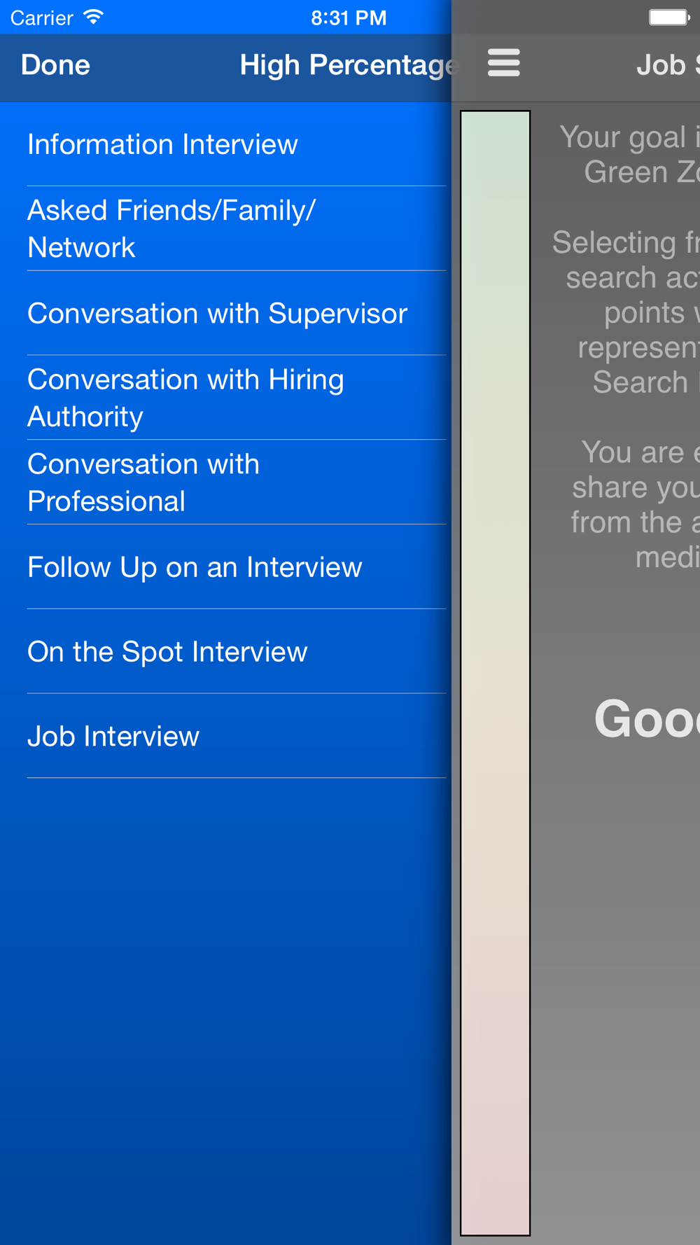 No interviews, no job offers! Whatever you are doing with your job hunt, you must generate interviews. The Job Search Power Meter app will show your momentum towards securing employment or a new job and provide success motivation. The Job Search Power Meter can potentially simplify your greatly complicated job hunt. You will feel better at the end of the day knowing that you are making progress. There is no other job hunting mobile app like this.