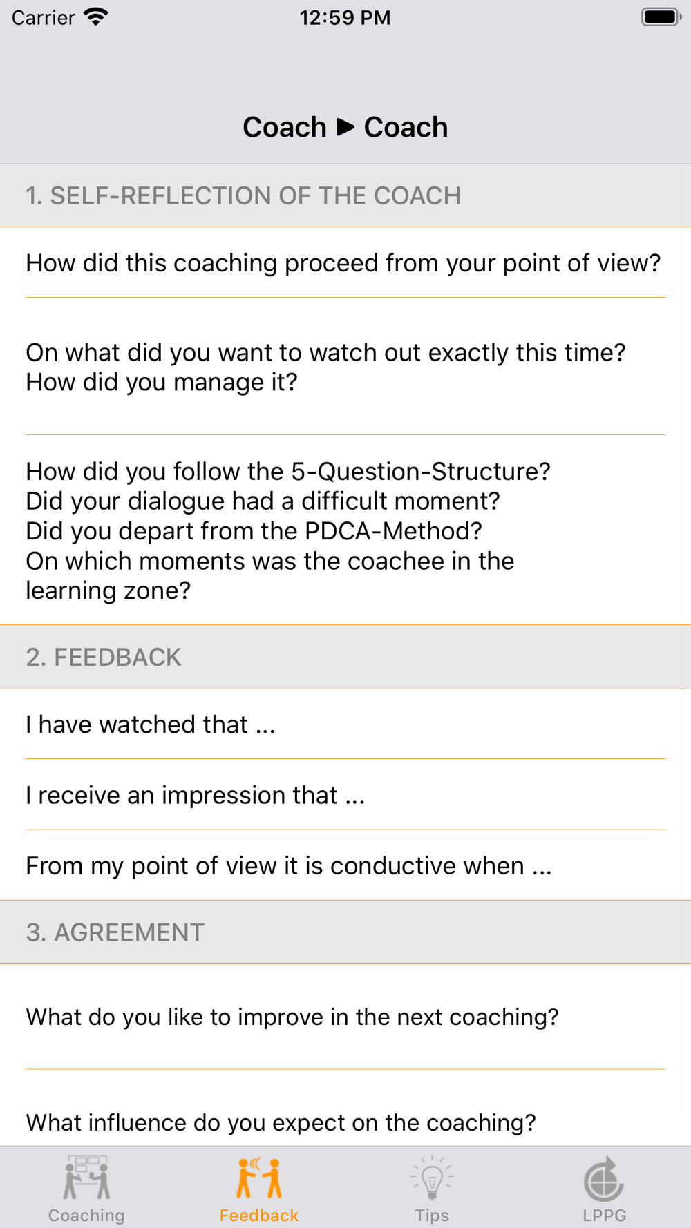 With the Coaching-Kata-App you can practice easily the 5-question framework of Coaching-KATA.