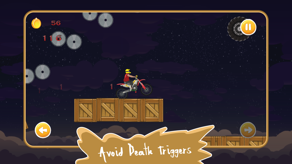 Bike Climb Racing is an addictive game, It will test your controls to drive forward and backwards and speed through platforms and avoid Death Triggers, present in form of hollow spaces or you are unable to maintain balance and hit ground. No Wifi, No Problem, Just Keep Racing. Forward or backwards, staying on platforms is the only way to keep your life. At times you have to fly crazy to get to the platforms or you would miss them. Enemies are firing everything they can at you, and you have to avoid hitting those objects raining down as well. Earn coins or Die. Freddy’s Bike Race is free game, where rider is going fast through highway, hills and other platforms