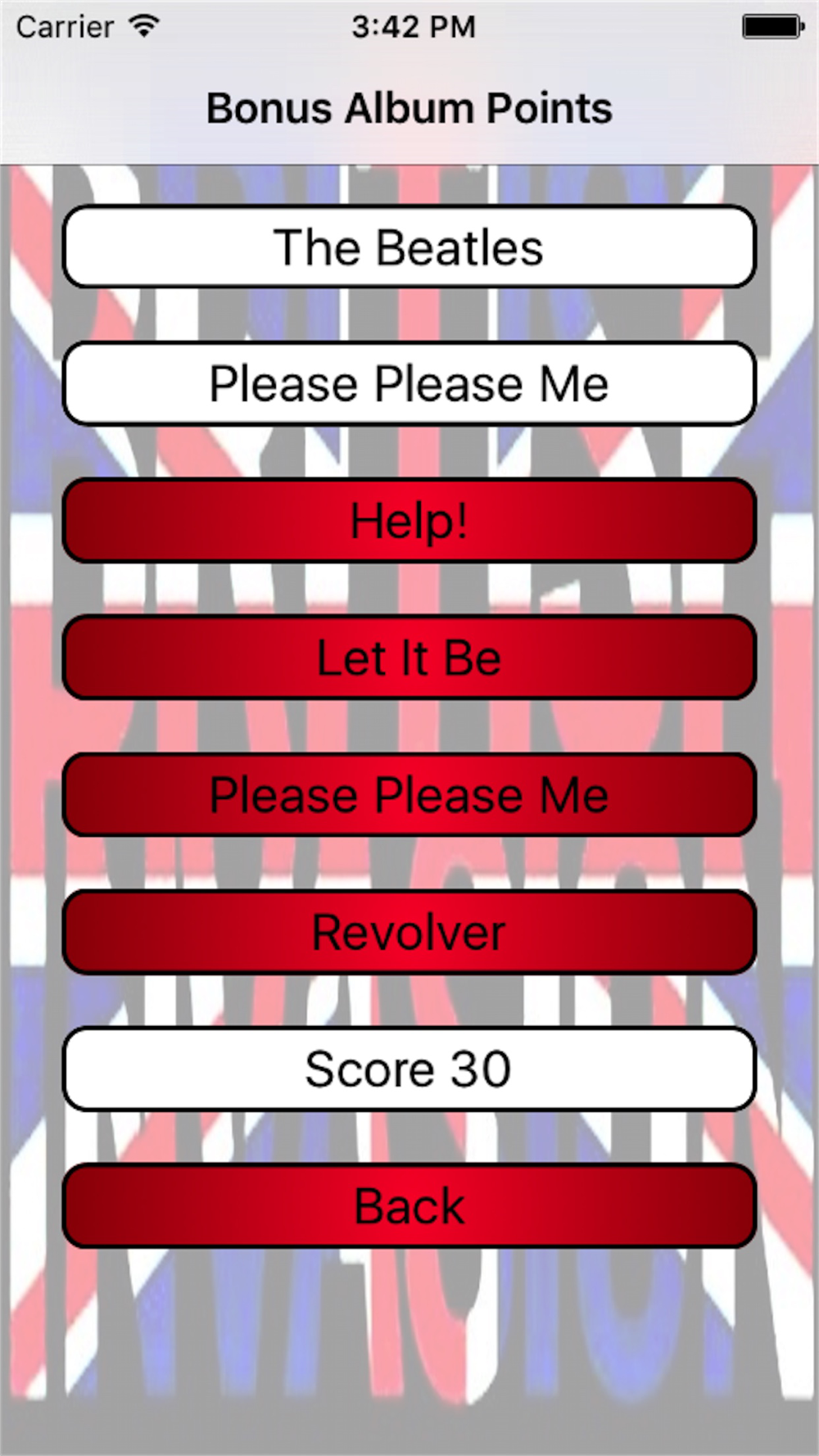 Have some fun with this simple music trivia game. Guess who sang the song then what album it was from. You can purchase items from iTunes also. The in-app purchase is to remove the advertising.