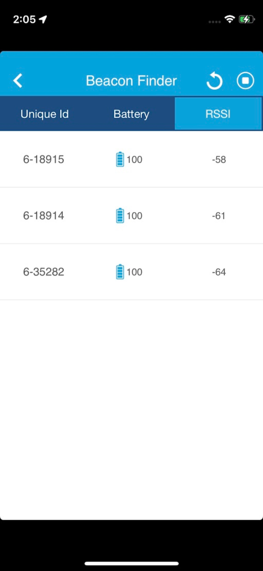 1. Beacon Finder: It detects all the nearby Pinmicro beacons and lists them. The list can be sorted on the basis of RSSI value, battery level, beacon ID etc.