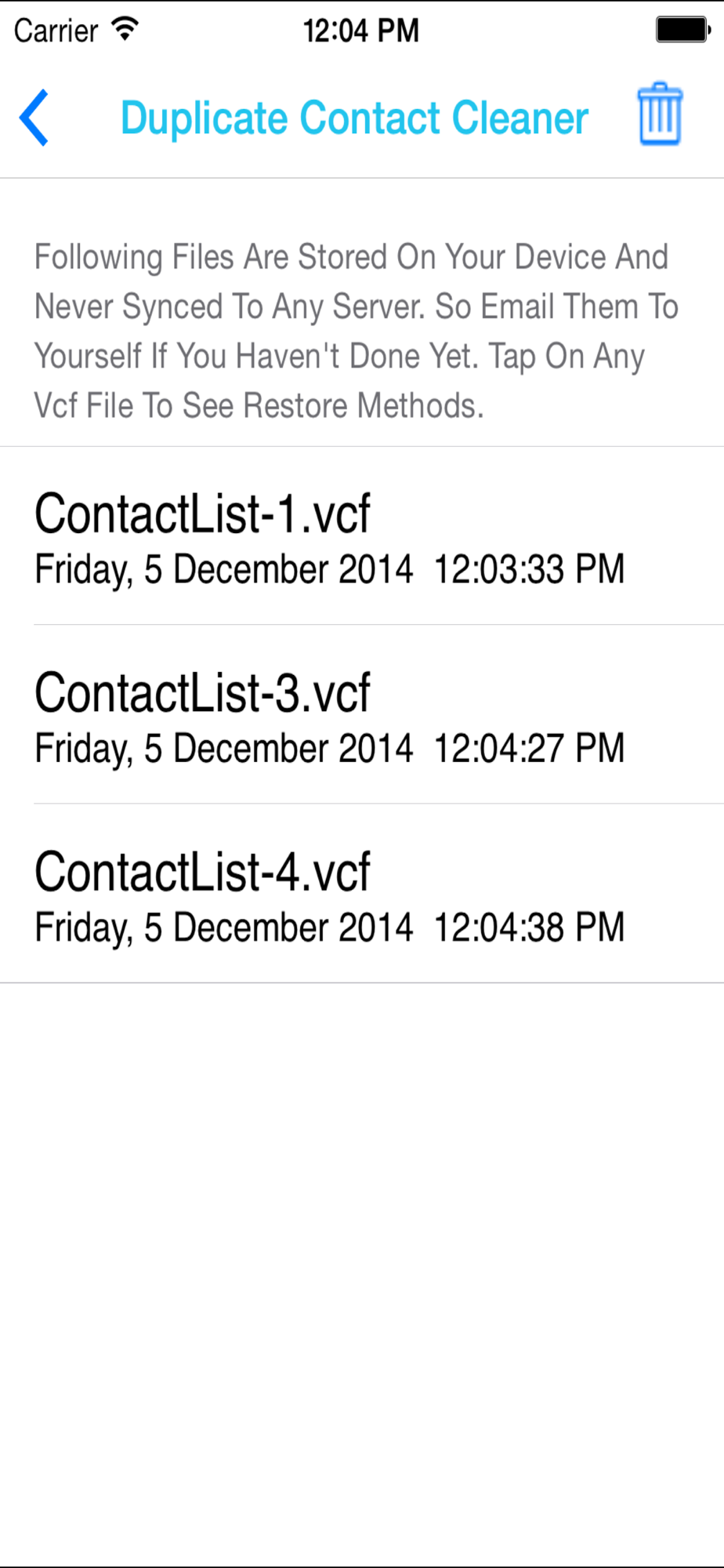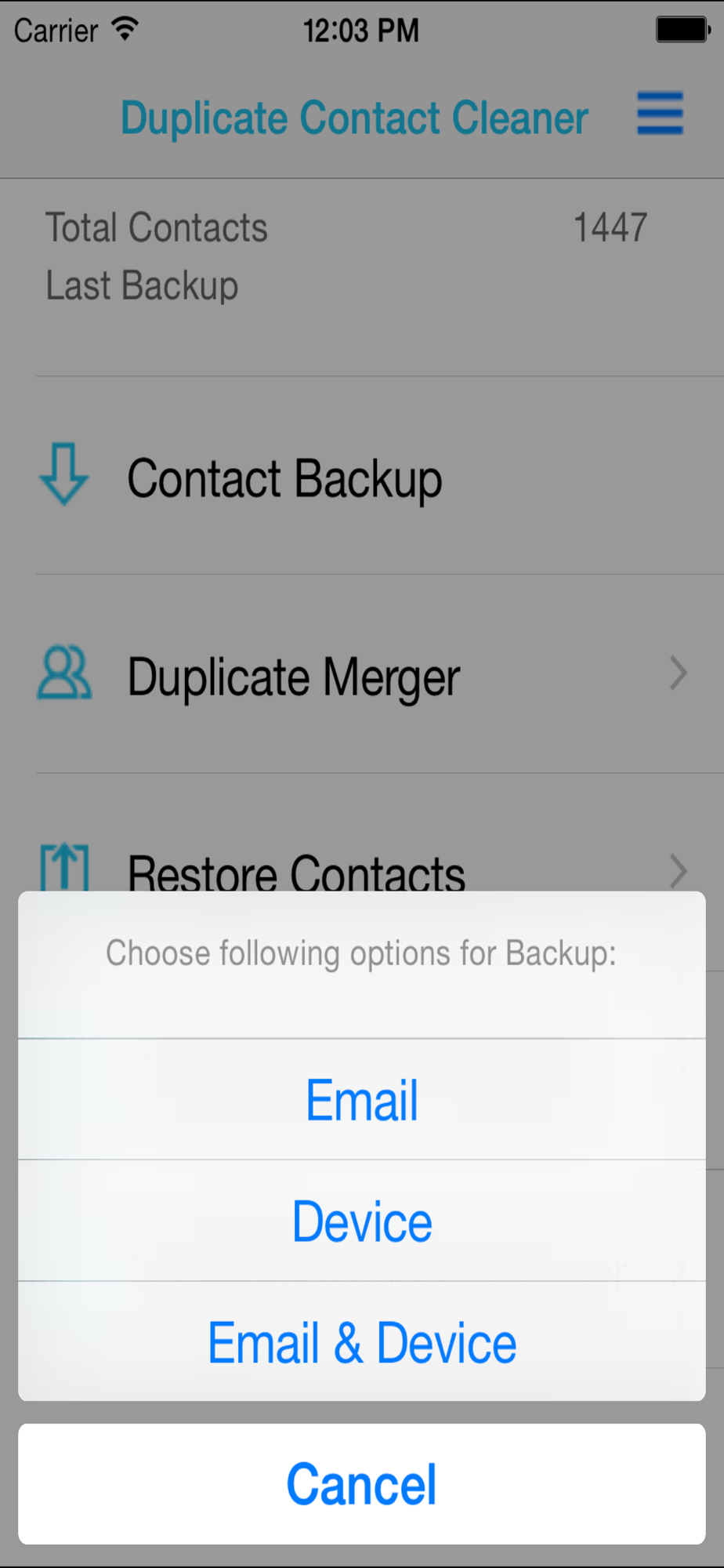 Instantly get rid of unnecessary and redundant contacts. Duplicate Contact Cleaner is a contact management app that de-clutters your address book by merging all duplicate contact names, phone numbers and email addresses. Easily search and browse through your contacts. It also allows you to backup and restore all your contacts with just a tap. Keep your address book clean and organized!