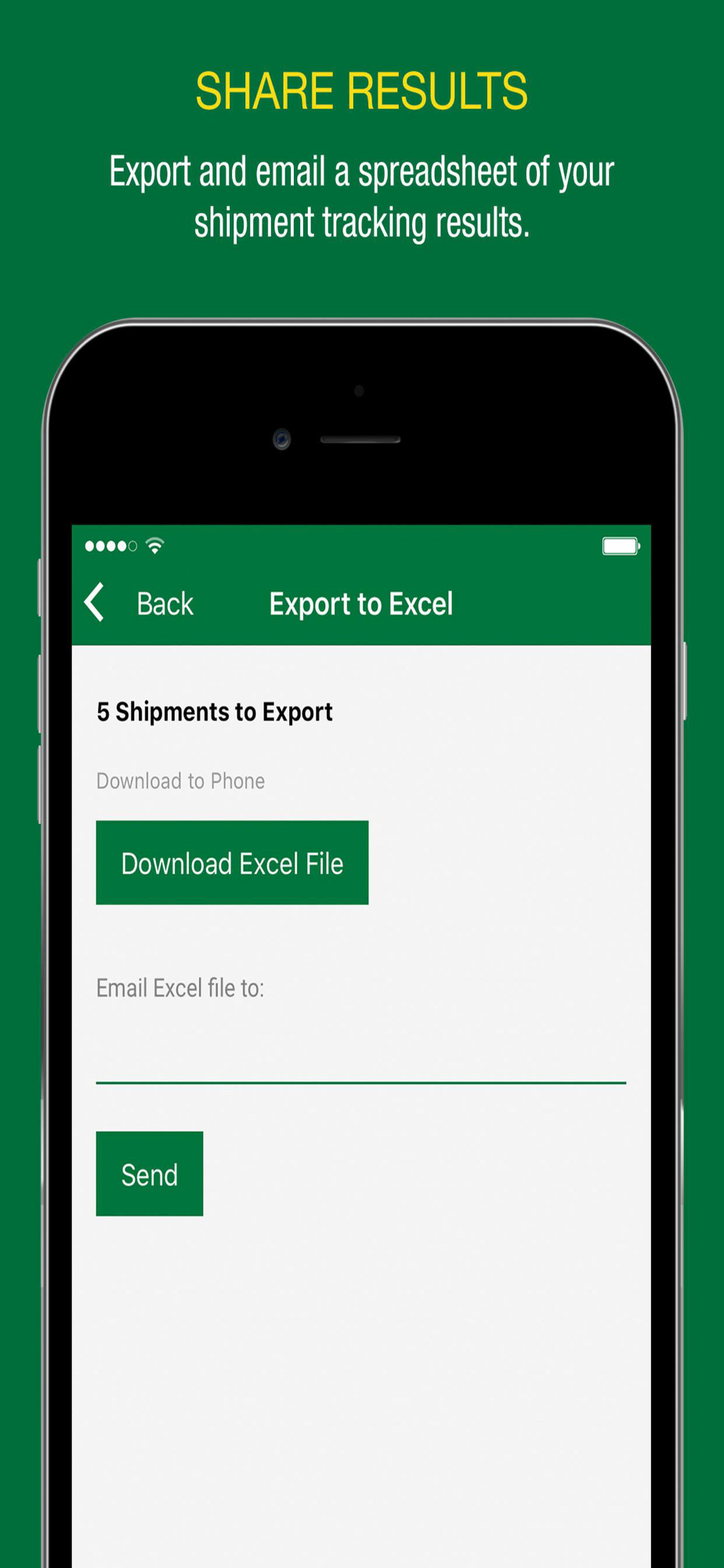 Export and email a spreadsheet of your shipment tracking results.