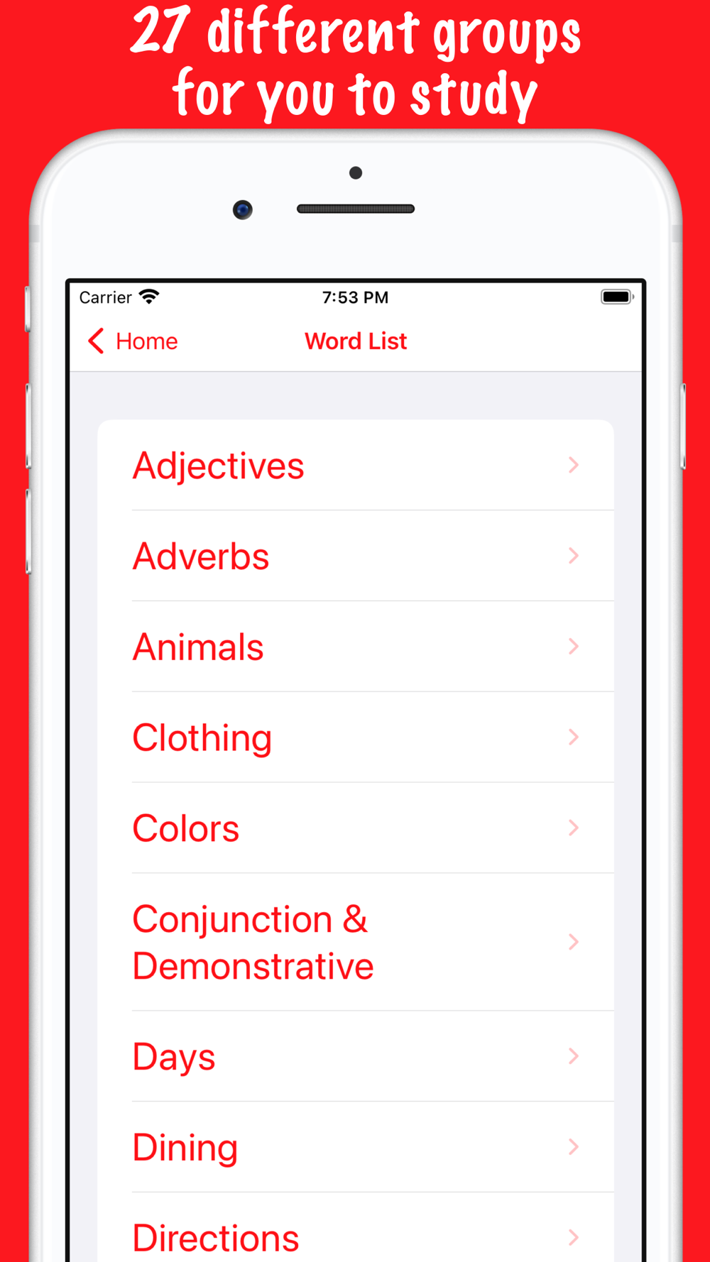 - A comprehensive word list that allows you to search through by English and Indonesian words grouped by sections