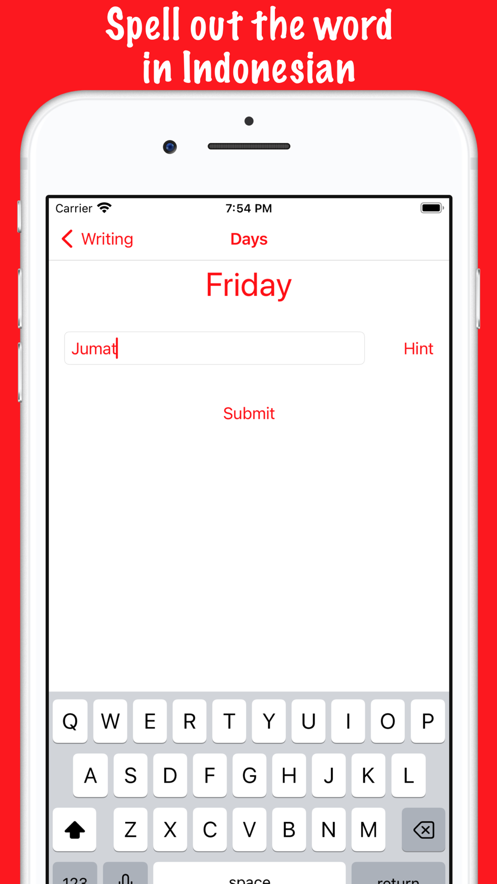 - A flash card tutorial where you can be prompted in Indonesian or English to match the word to the correct choice