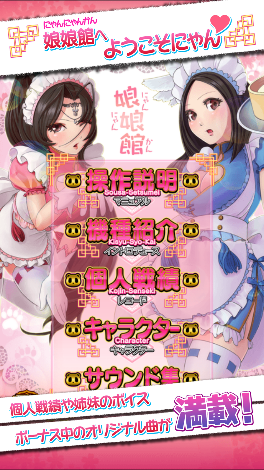 娘娘館ではオリジナルビジュアルや、魅力たっぷりの3種類のボーナス曲、姉妹のキュートなボイスなど各種サウンドもご用意。