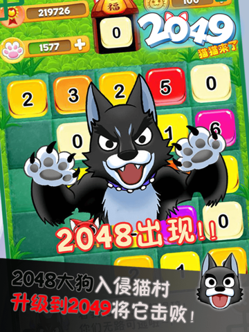 * 现在就升级,和小伙伴们一起击败入侵猫村的2048大狗!