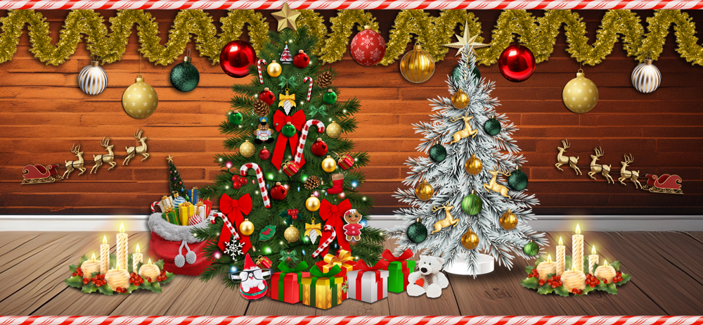 Select background and decorate with 350+ Holiday themed items like Reindeer, Santa, Toys, Garland, Bells, Presents, Ornaments, Cookies, Gold Star, Glitter Cupcakes, Bows, Princess Dolls, Candy Canes, Gingerbread, Dreidel, frozen Icicles, and more!