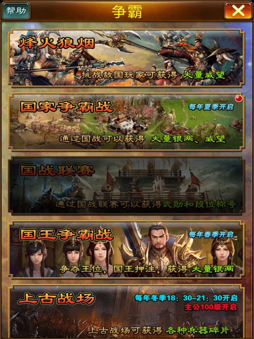 战鼓已经擂动,号角已经吹响,攻城大战一触即发。游戏首创卡牌国战,军团攻城战,全服玩家一同上阵,开启实力大PK! 烈焰燃烧,尘土遮天,千人攻城,万人国战。更有副本爆刷、擂台竞技……在这个风云乱世,只有靠绝对的实力才能独占鳌头,一统天下!