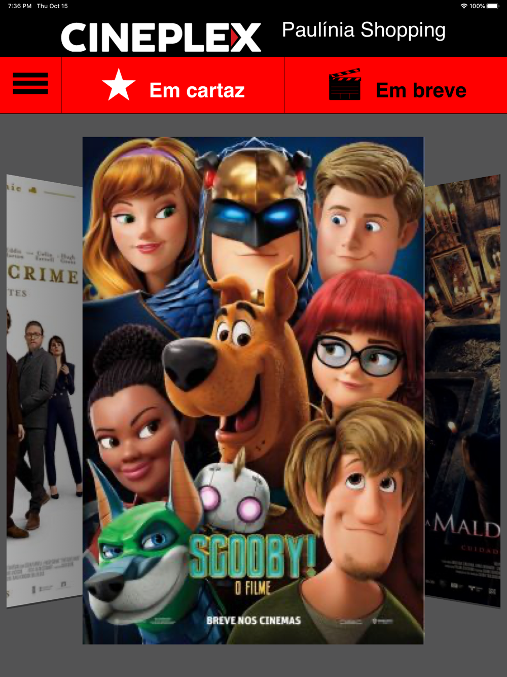 Guia de programação do Cineplex Cinemas. Paulínia, Itatiba e Campinas.