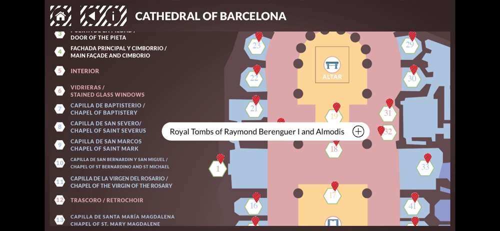 A handy guide and an audio app of the Cathedral of Barcelona in a one device, your own phone!. Entertaining and intuitive, the only way to know each place and each chapel of the cathedral during your visit. You will also have a memory forever of what you've seen and it costs less than a cup of coffee.