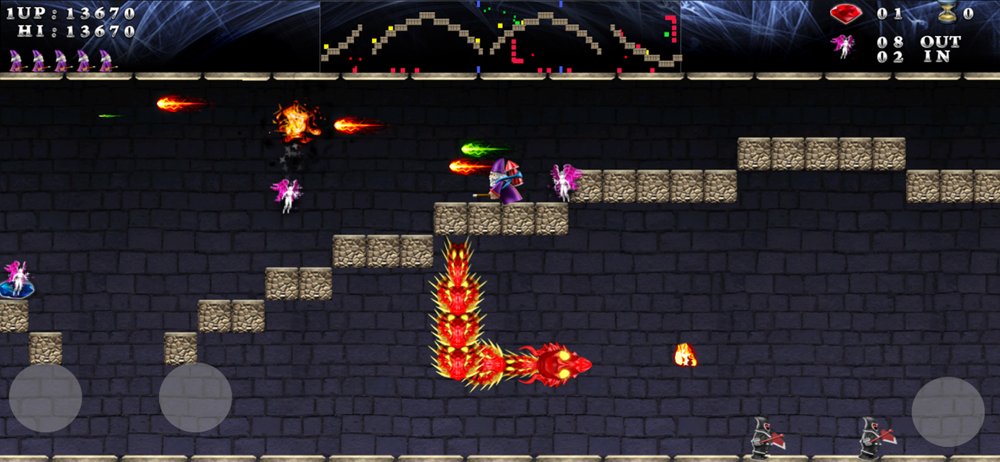 - Helper ( purple potion ): adds a protecting item to the wizard; it kills enemies