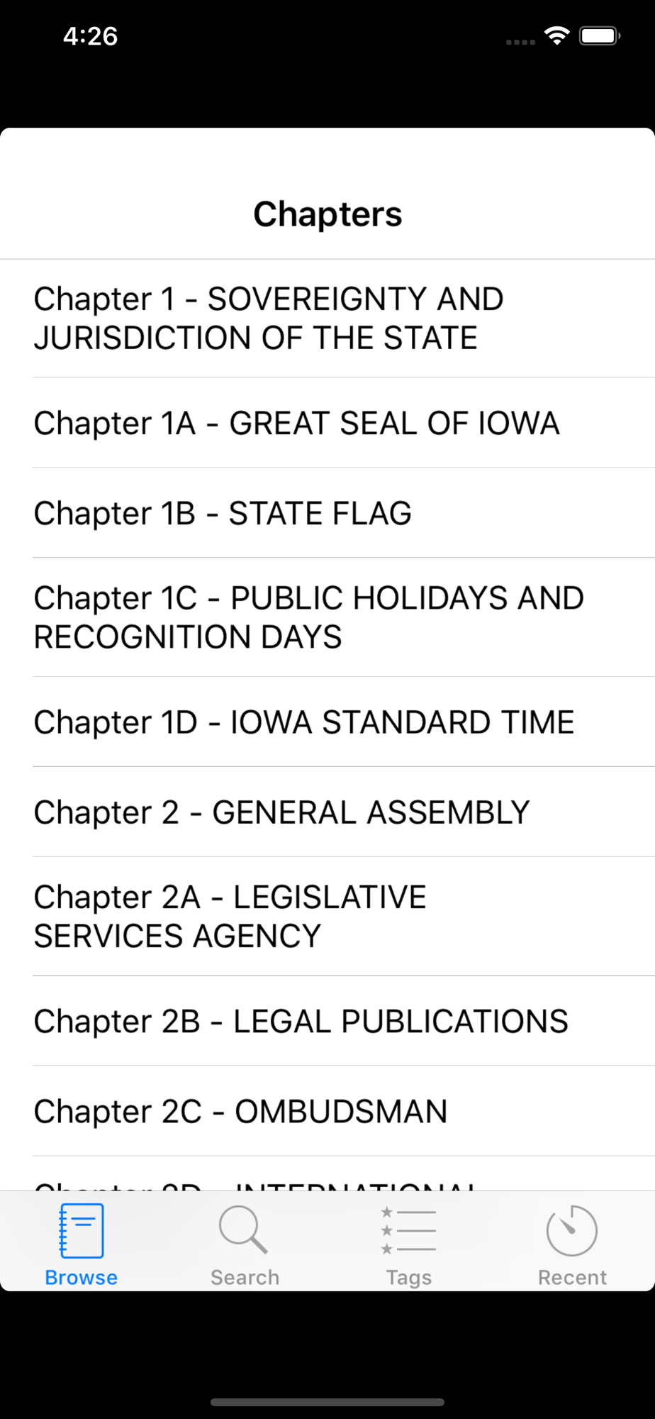 Iowa Law contains the entire 2019 version of the Iowa Code in an easy to use, well-formatted, searchable form. You can now easily carry the thousands of pages of the Iowa Code with you everywhere on your phone, or iPod Touch.