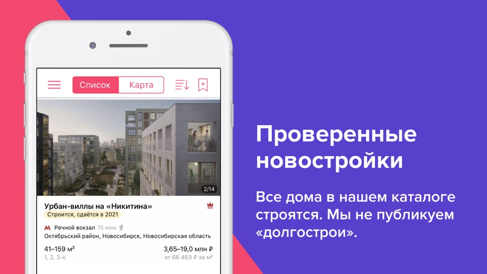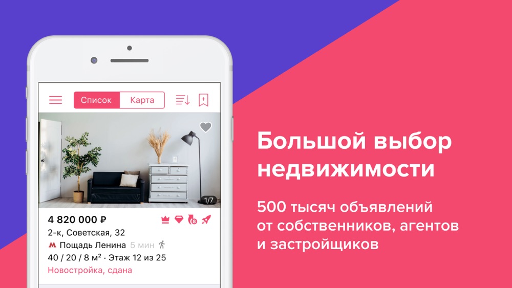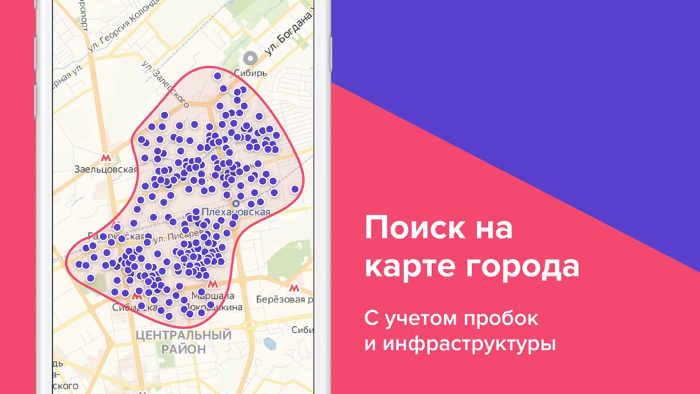 — Удобный поиск по карте Приложение покажет квартиры