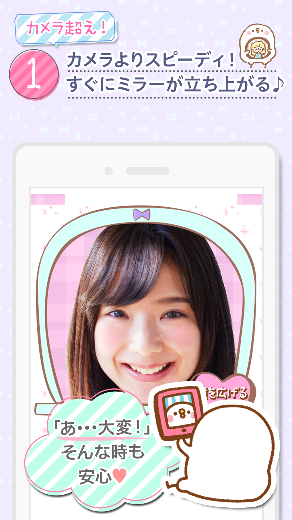 ●すぐミラー(鏡)が起動! アプリ起動と同時にミラーが起動するので、急いでいるときも便利です。