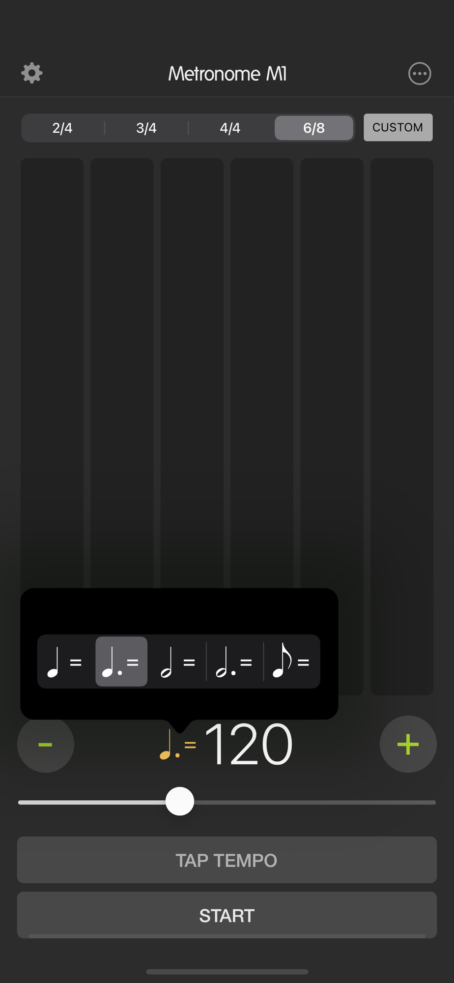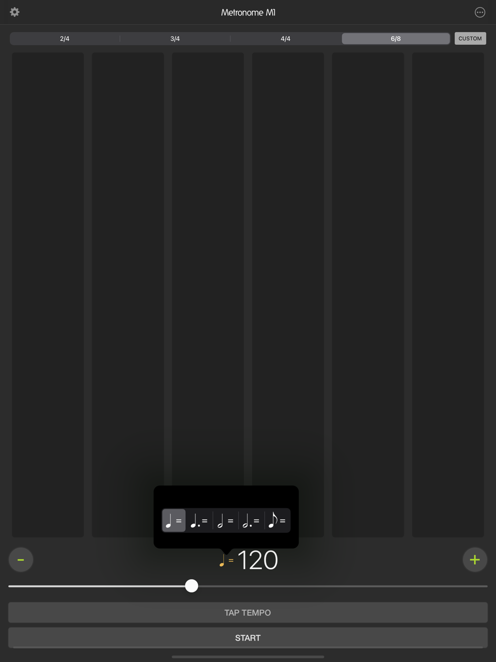 Metronome M1 supports the following common Time Signatures and more.